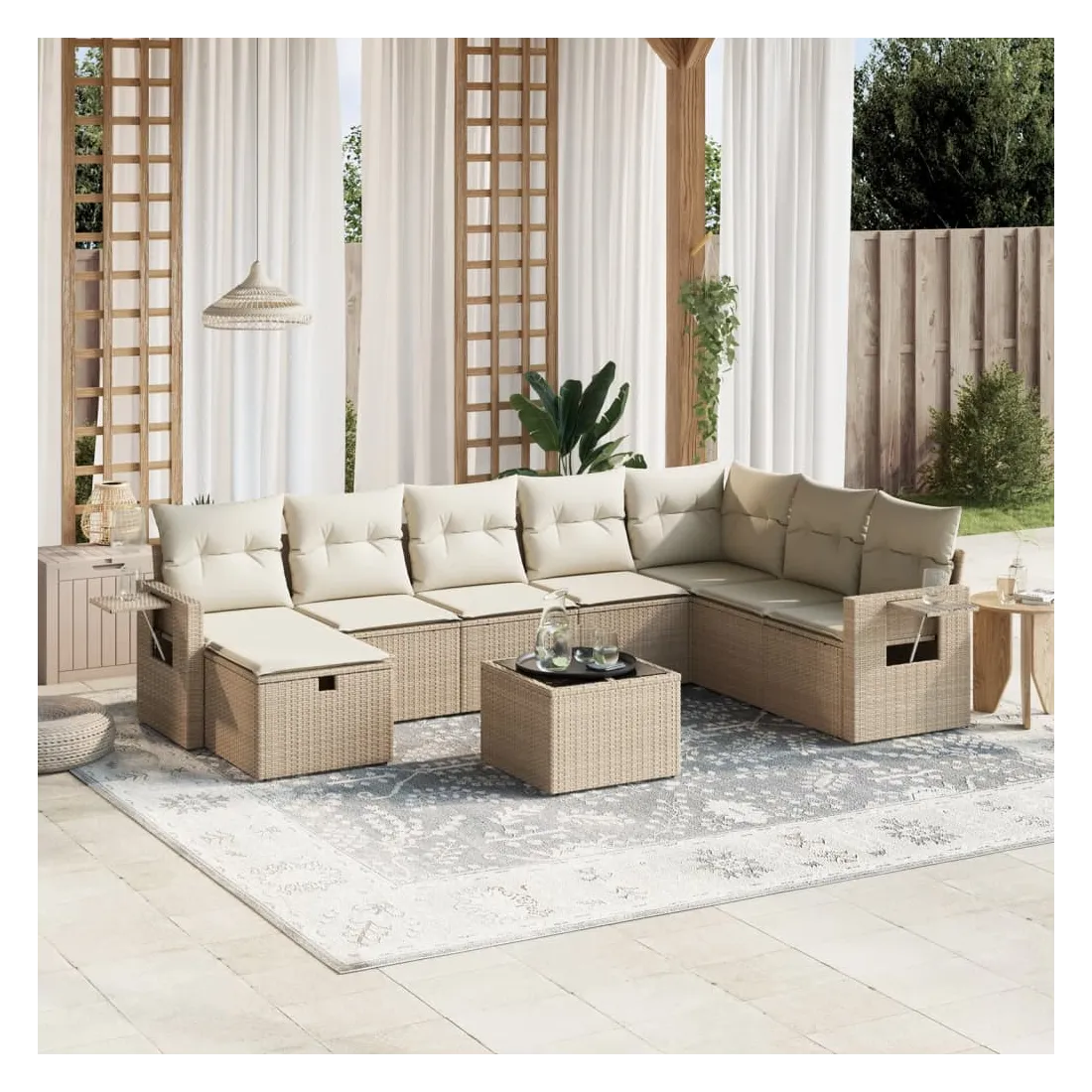 Cet ensemble de canapés de jardin est le complément parfait de votre arrière-cour, terrasse ou patio, offrant un espace confortable et accueillant pour discuter avec la famille et les amis ou simplement se détendre et profiter de l'extérieur. Matériau durable : la résine tressée, également connue sous le nom de poly rotin, est un matériau synthétique solide et nécessitant peu d'entretien qui ressemble au rotin naturel. Il est léger, facile à nettoyer et couramment utilisé pour les meubles d'extérieur en raison de sa durabilité et de ses propriétés de résistance aux intempéries.Dessus en verre : le dessus de la table d'extérieur est fabriqué en verre trempé solide et durable, ce qui le rend facile à nettoyer avec un chiffon humide et ajoute une touche d'élégance à votre espace extérieur.Housse amovible et lavable : ces coussins de siège sont dotés de housses amovibles pour un lavage et un entretien faciles.Cadre robuste et stable : le cadre en acier enduit de poudre assure la solidité et la stabilité du meuble de jardin pour une utilisation quotidienne à l'extérieur.Conception modulaire : cet ensemble de meubles d'extérieur a une conception modulaire, ce qui le rend complètement flexible et facile à déplacer, afin que vous puissiez créer un agencement de meubles d'extérieur personnalisé. Bon à savoir :Pour que vos meubles d'extérieur restent beaux, nous vous recommandons de les protéger avec une housse imperméable.