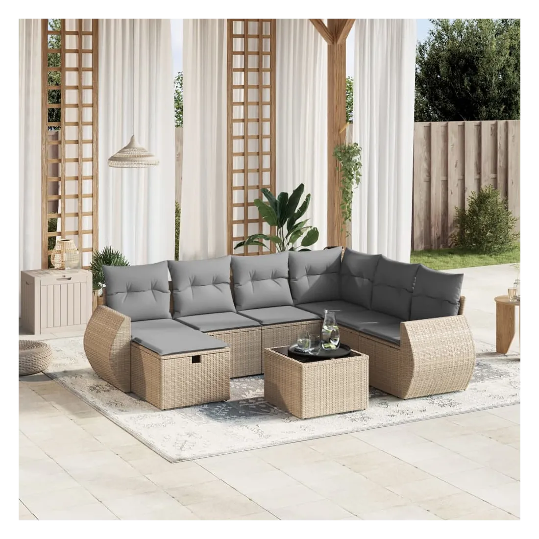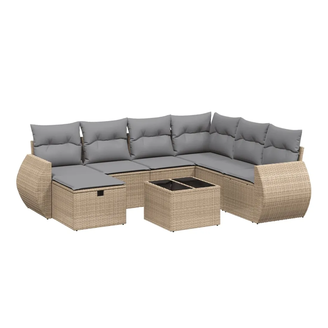 Salon de jardin avec coussins 8pcs mélange beige résine tressée