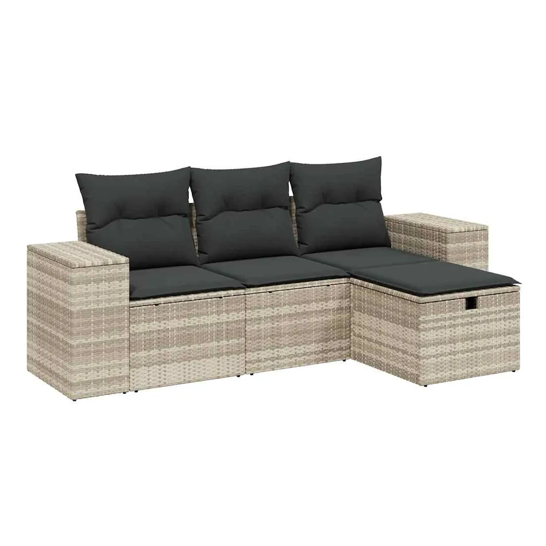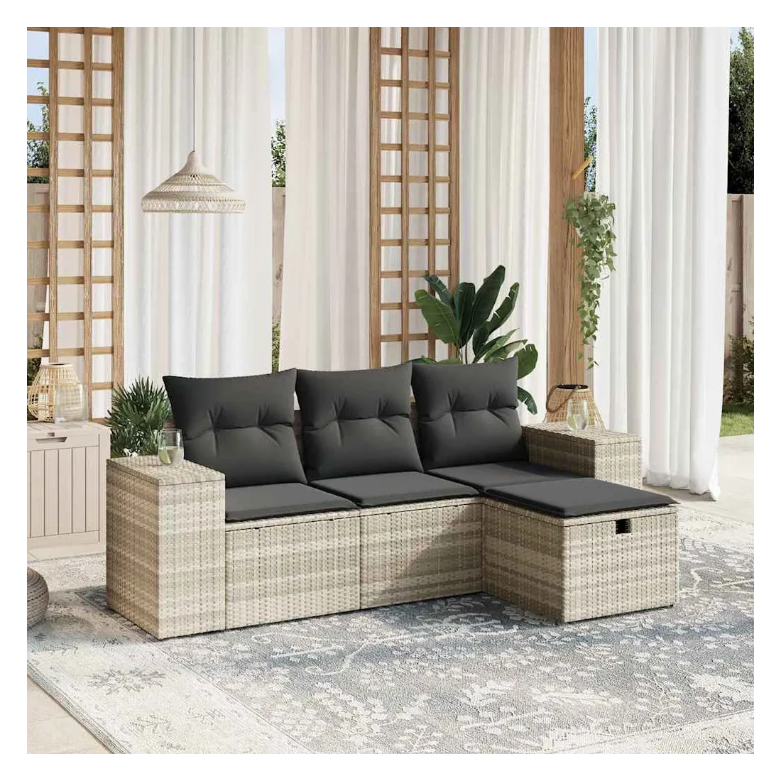 Cet ensemble de canapés de jardin est le complément parfait de votre arrière-cour, terrasse ou patio, offrant un espace confortable et accueillant pour discuter avec la famille et les amis ou simplement se détendre et profiter de l'extérieur. Matériau durable : la résine tressée, également connue sous le nom de poly rotin, est un matériau synthétique solide et nécessitant peu d'entretien qui ressemble au rotin naturel. Il est léger, facile à nettoyer et couramment utilisé pour les meubles d'extérieur en raison de sa durabilité et de ses propriétés de résistance aux intempéries.Expérience d'assise confortable : ce mobilier d'extérieur, doté de coussins épais, offre une expérience d'assise confortable.Housse amovible et lavable : ces coussins de siège sont dotés de housses amovibles pour un lavage et un entretien faciles.Cadre robuste et stable : le cadre en acier enduit de poudre assure la solidité et la stabilité du meuble de jardin pour une utilisation quotidienne à l'extérieur.Conception modulaire : cet ensemble de meubles d'extérieur a une conception modulaire, ce qui le rend complètement flexible et facile à déplacer, afin que vous puissiez créer un agencement de meubles d'extérieur personnalisé. Bon à savoir :Pour que vos meubles d'extérieur restent beaux, nous vous recommandons de les protéger avec une housse imperméable.