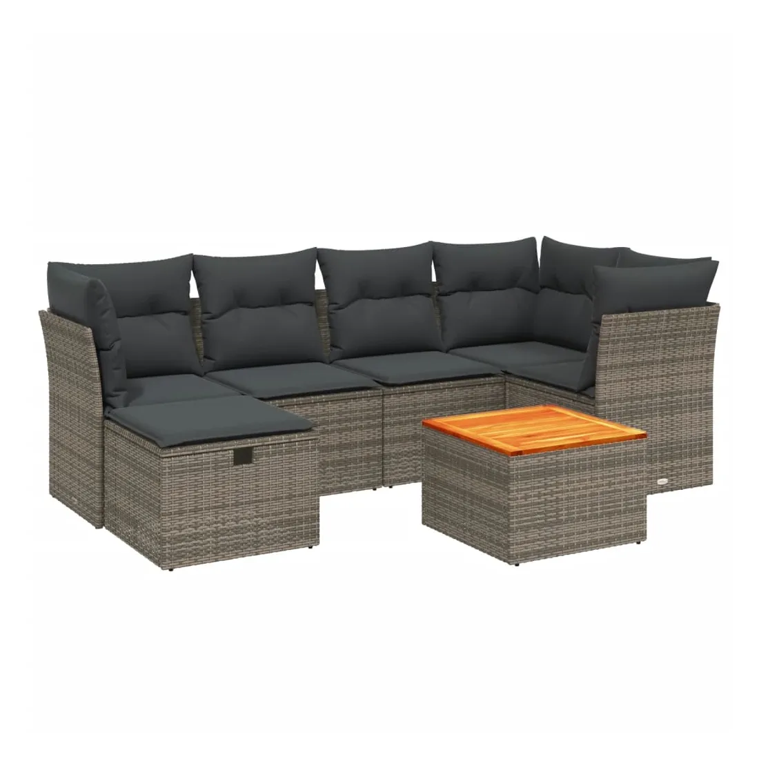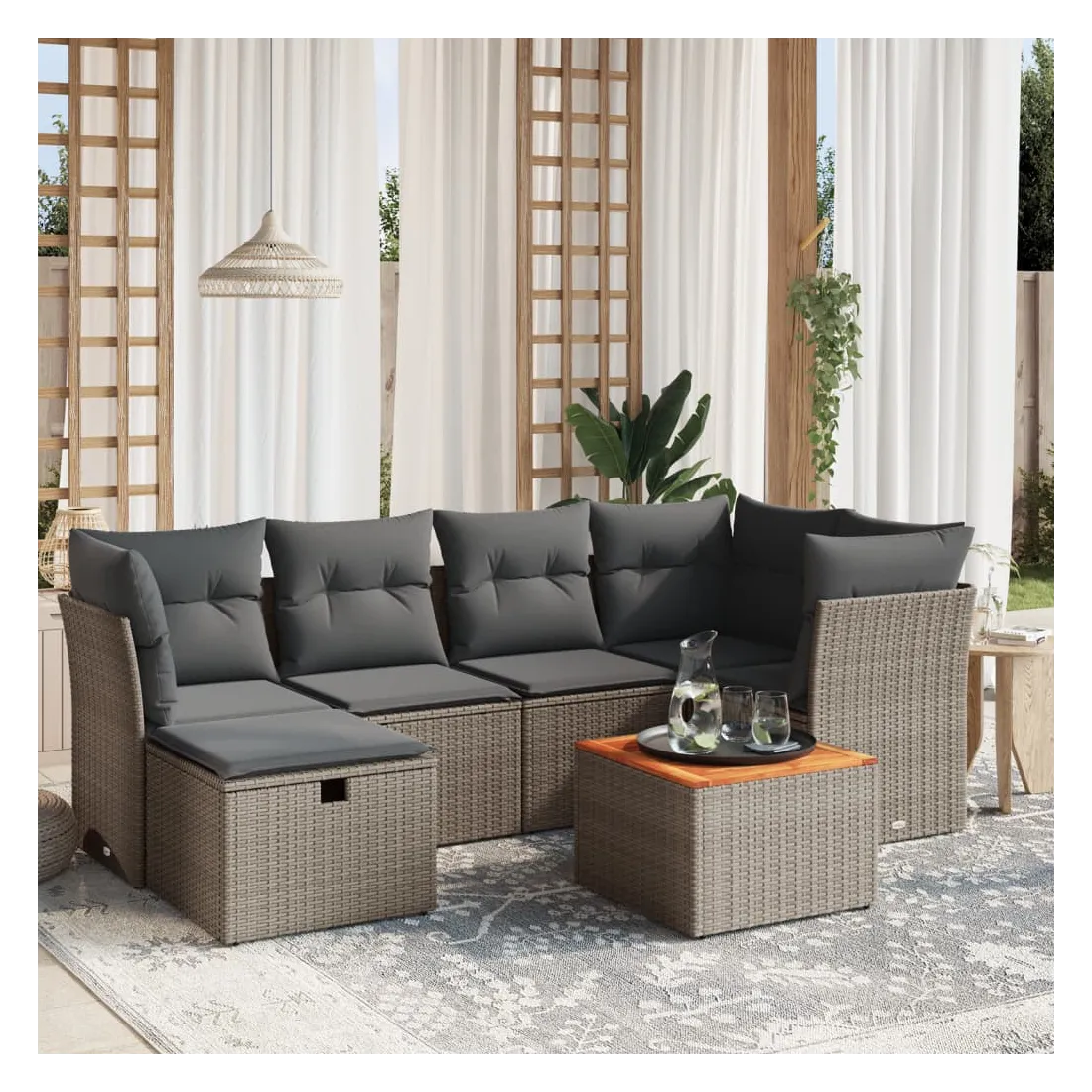 Cet ensemble de canapés de jardin est le complément parfait de votre arrière-cour, terrasse ou patio, offrant un espace confortable et accueillant pour discuter avec la famille et les amis ou simplement se détendre et profiter de l'extérieur. Matériau durable : la résine tressée, également connue sous le nom de poly rotin, est un matériau synthétique solide et nécessitant peu d'entretien qui ressemble au rotin naturel. Il est léger, facile à nettoyer et couramment utilisé pour les meubles d'extérieur en raison de sa durabilité et de ses propriétés de résistance aux intempéries.Dessus stable et facile à nettoyer : cette table de jardin a un dessus en bois d'acacia robuste, durable et facile à nettoyer avec un chiffon humide.Housse amovible et lavable : ces coussins de siège sont dotés de housses amovibles pour un lavage et un entretien faciles.Cadre robuste et stable : le cadre en acier enduit de poudre assure la solidité et la stabilité du meuble de jardin pour une utilisation quotidienne à l'extérieur.Conception modulaire : cet ensemble de meubles d'extérieur a une conception modulaire, ce qui le rend complètement flexible et facile à déplacer, afin que vous puissiez créer un agencement de meubles d'extérieur personnalisé. Bon à savoir :Pour que vos meubles d'extérieur restent beaux, nous vous recommandons de les protéger avec une housse imperméable.