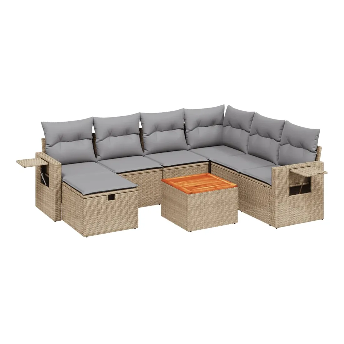 Salon de jardin avec coussins 8pcs mélange beige résine tressée