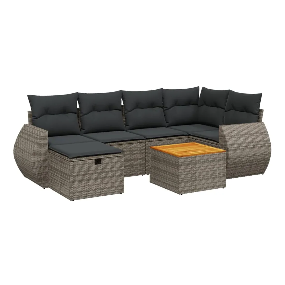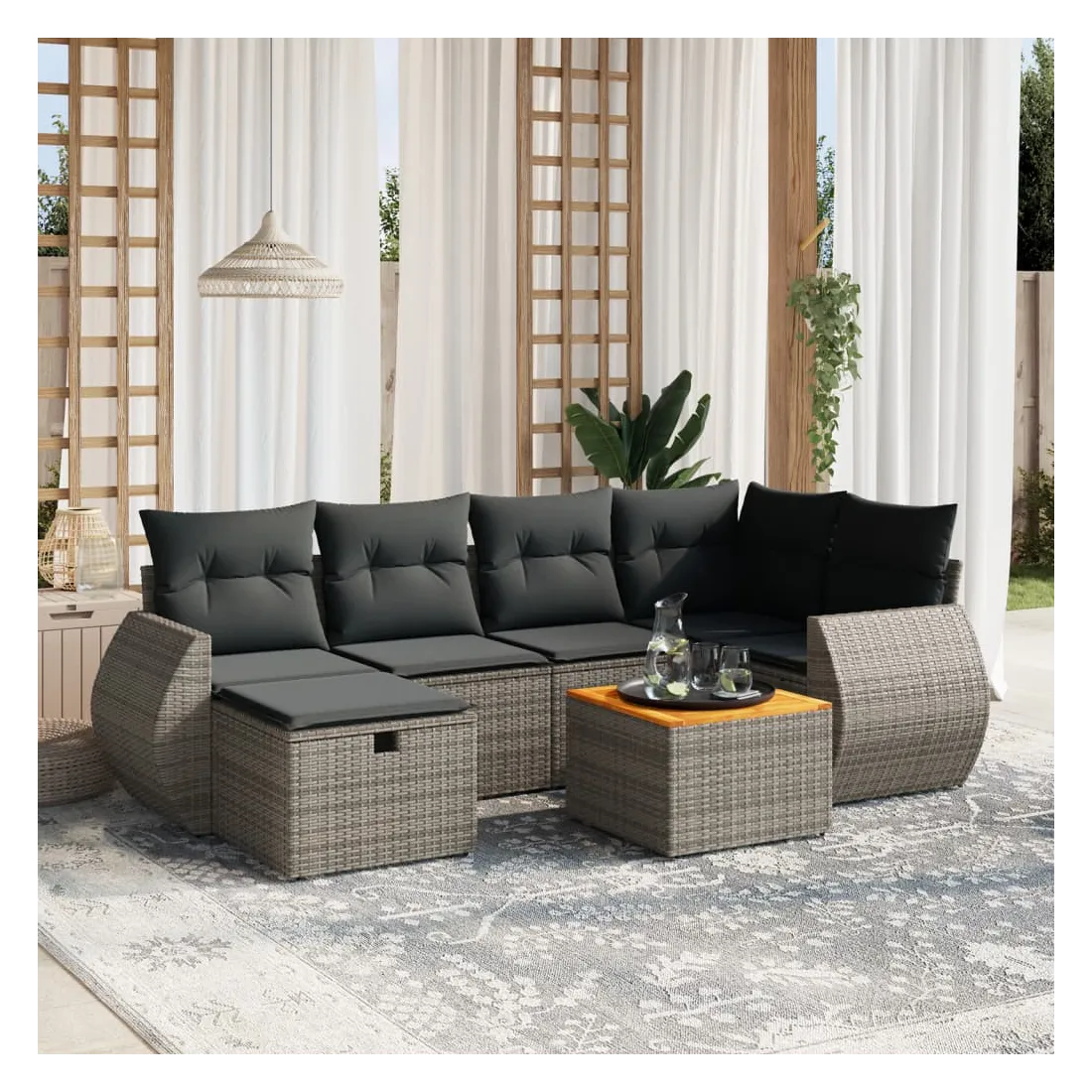 Cet ensemble de canapés de jardin est le complément parfait de votre arrière-cour, terrasse ou patio, offrant un espace confortable et accueillant pour discuter avec la famille et les amis ou simplement se détendre et profiter de l'extérieur. Matériau durable : la résine tressée, également connue sous le nom de poly rotin, est un matériau synthétique solide et nécessitant peu d'entretien qui ressemble au rotin naturel. Il est léger, facile à nettoyer et couramment utilisé pour les meubles d'extérieur en raison de sa durabilité et de ses propriétés de résistance aux intempéries.Dessus stable et facile à nettoyer : cette table de jardin a un dessus en bois d'acacia robuste, durable et facile à nettoyer avec un chiffon humide.Housse amovible et lavable : ces coussins de siège sont dotés de housses amovibles pour un lavage et un entretien faciles.Cadre robuste et stable : le cadre en acier enduit de poudre assure la solidité et la stabilité du meuble de jardin pour une utilisation quotidienne à l'extérieur.Conception modulaire : cet ensemble de meubles d'extérieur a une conception modulaire, ce qui le rend complètement flexible et facile à déplacer, afin que vous puissiez créer un agencement de meubles d'extérieur personnalisé. Bon à savoir :Pour que vos meubles d'extérieur restent beaux, nous vous recommandons de les protéger avec une housse imperméable.