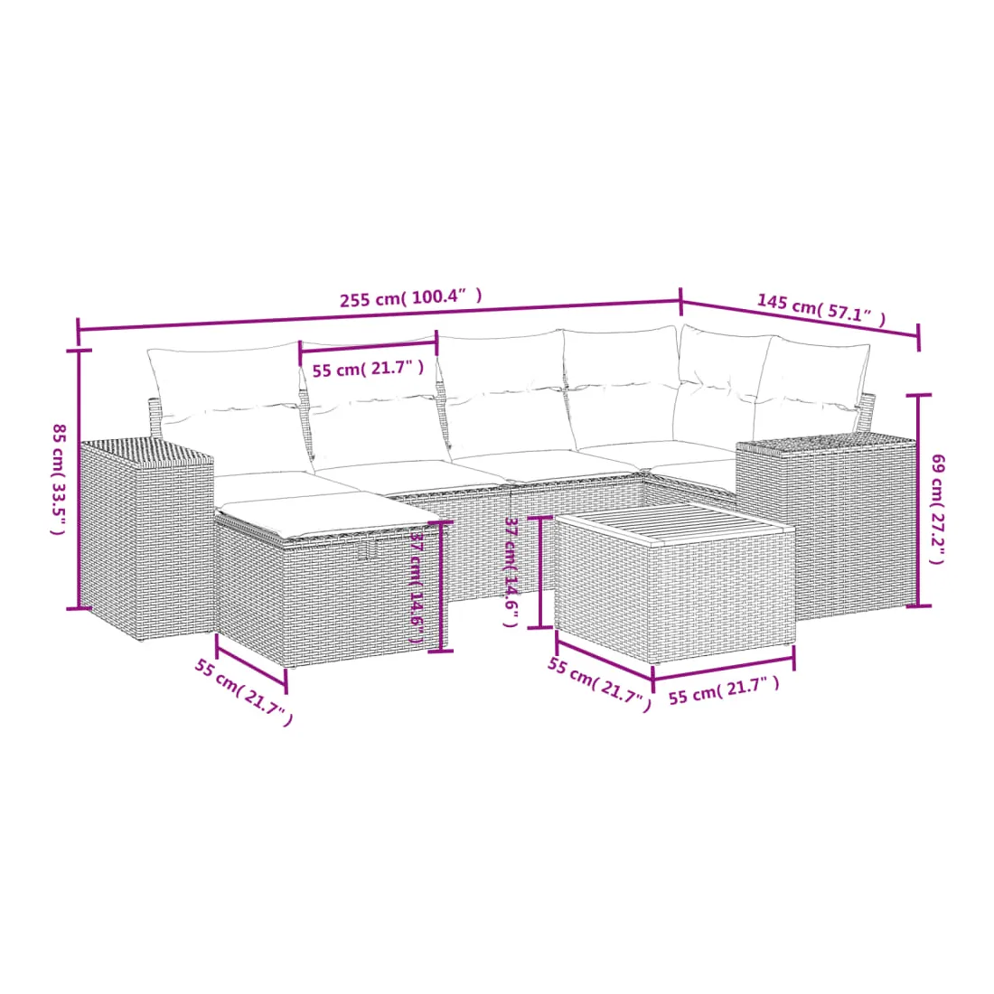 - Dimensions : 55 x 55 x 37 cm (L x l x H)