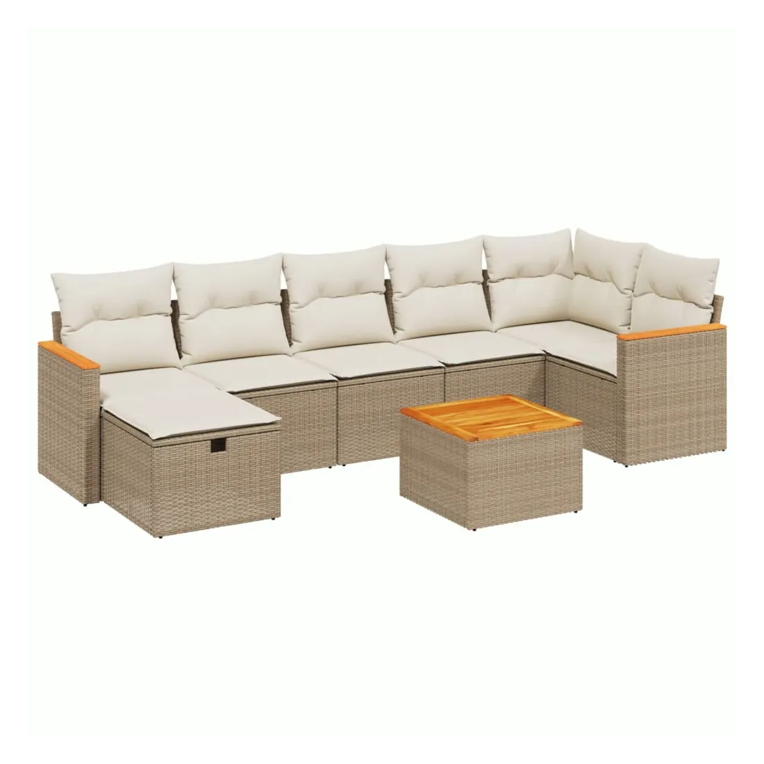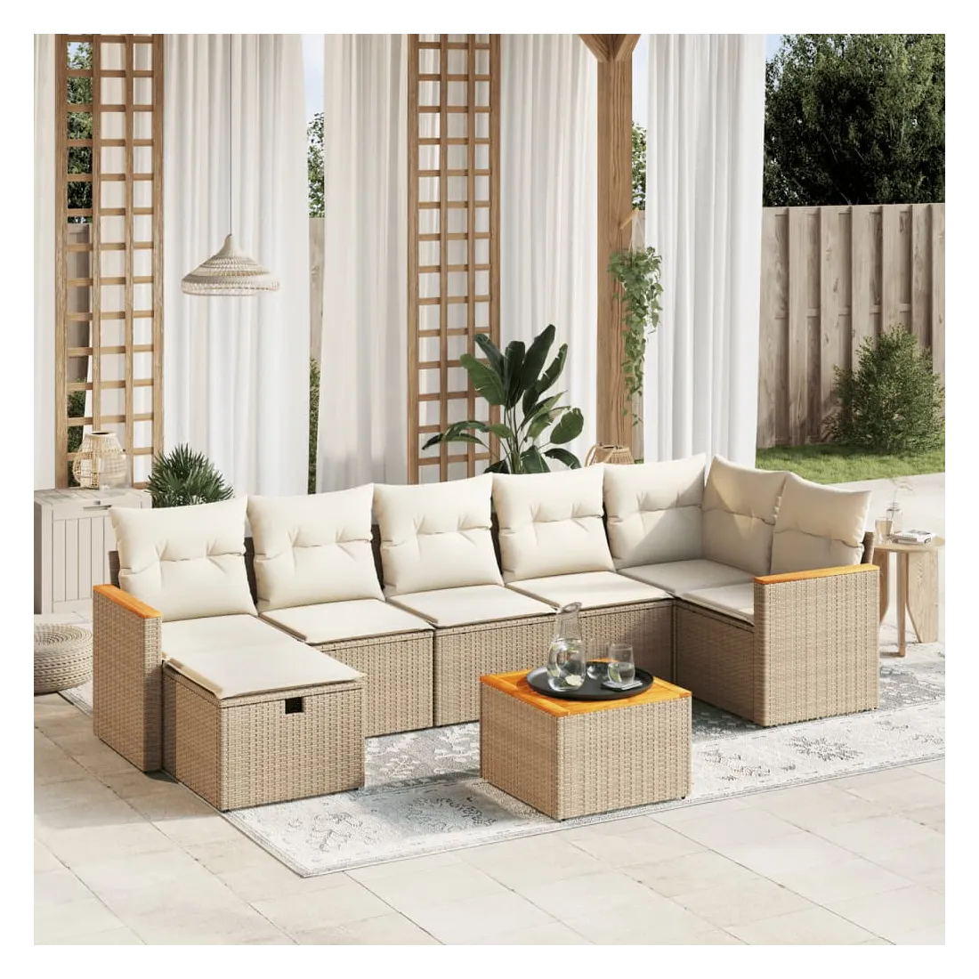 Salon de jardin avec coussins 8 pcs beige résine tressée