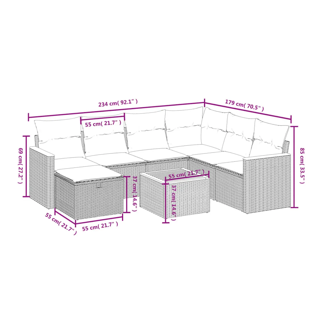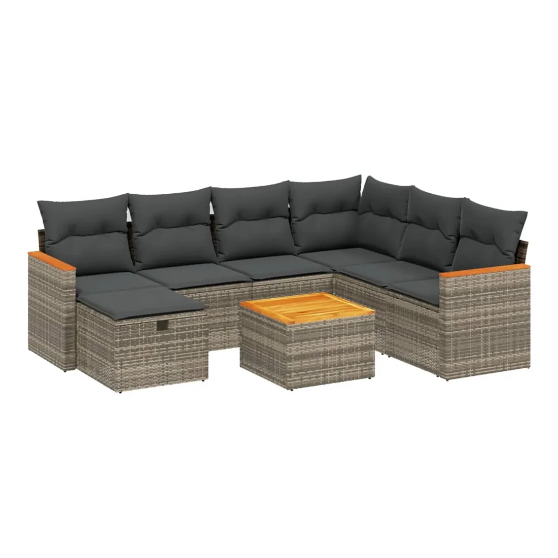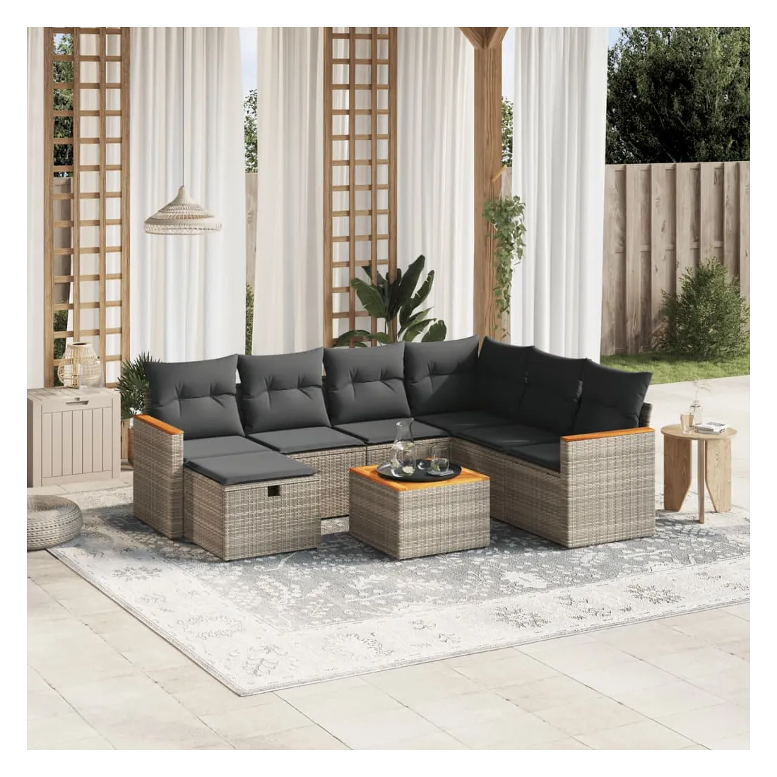 Salon de jardin 8 pcs avec coussins gris résine tressée