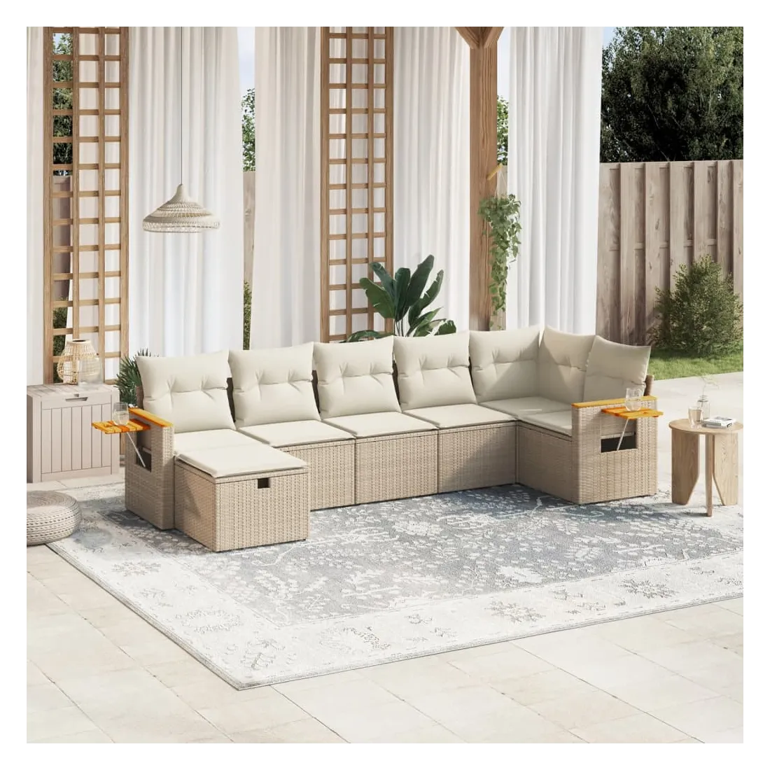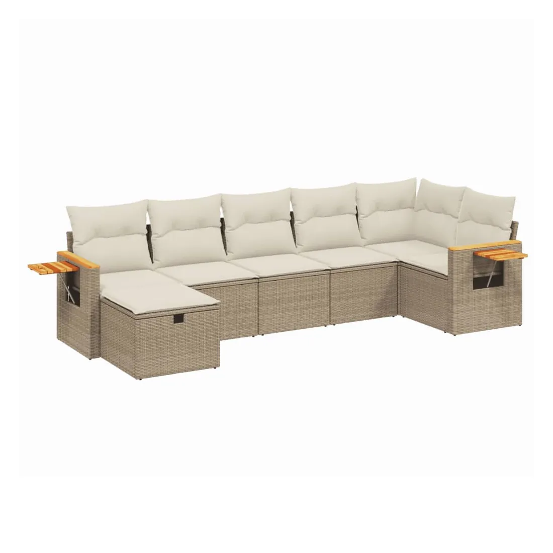 Salon de jardin avec coussins 7 pcs beige résine tressée