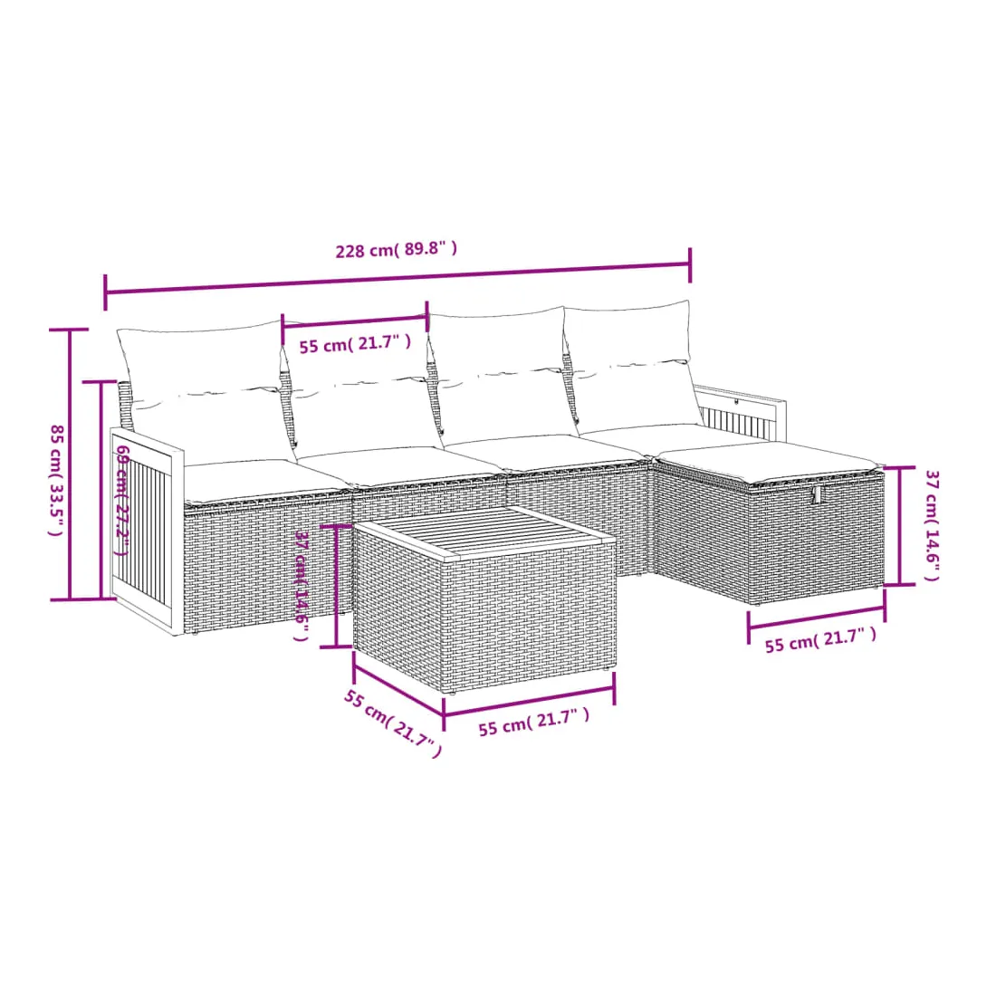 - Dimensions : 55 x 55 x 37 cm (L x l x H)