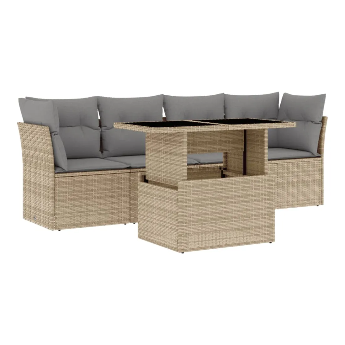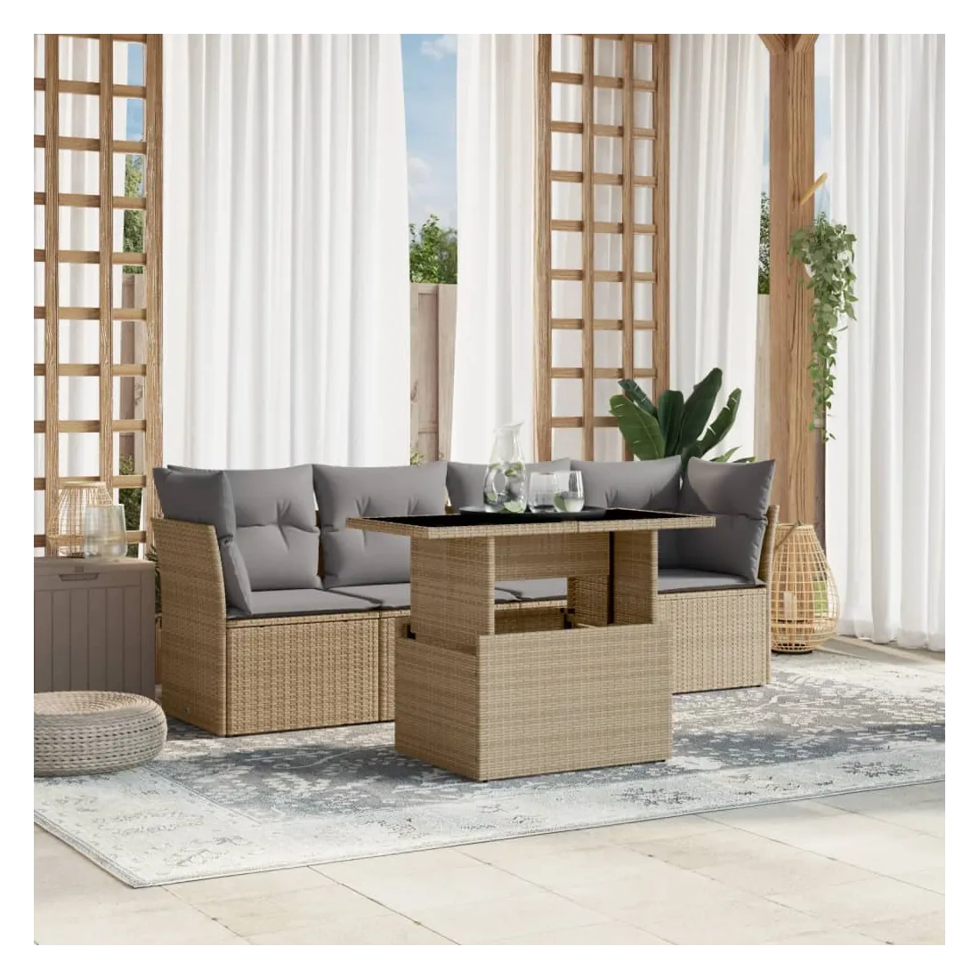 Cet ensemble de canapés de jardin est le complément parfait de votre arrière-cour, terrasse ou patio, offrant un espace confortable et accueillant pour discuter avec la famille et les amis ou simplement se détendre et profiter de l'extérieur. Matériau durable : la résine tressée, également connue sous le nom de poly rotin, est un matériau synthétique solide et nécessitant peu d'entretien qui ressemble au rotin naturel. Il est léger, facile à nettoyer et couramment utilisé pour les meubles d'extérieur en raison de sa durabilité et de ses propriétés de résistance aux intempéries.Dessus de table réglable : le dessus de table peut être soulevé pour rendre la table plus haute, ce qui transforme la table d'extérieur d'une table basse à une table de salle à manger. Elle est parfaite pour recevoir des invités ou prendre des repas à l'extérieur.Expérience d'assise confortable : ce mobilier d'extérieur, doté de coussins épais, offre une expérience d'assise confortable.Housse amovible et lavable : ces coussins de siège sont dotés de housses amovibles pour un lavage et un entretien faciles.Conception modulaire : cet ensemble de meubles d'extérieur a une conception modulaire, ce qui le rend complètement flexible et facile à déplacer, afin que vous puissiez créer un agencement de meubles d'extérieur personnalisé. Bon à savoir :Pour que vos meubles d'extérieur restent beaux, nous vous recommandons de les protéger avec une housse imperméable.