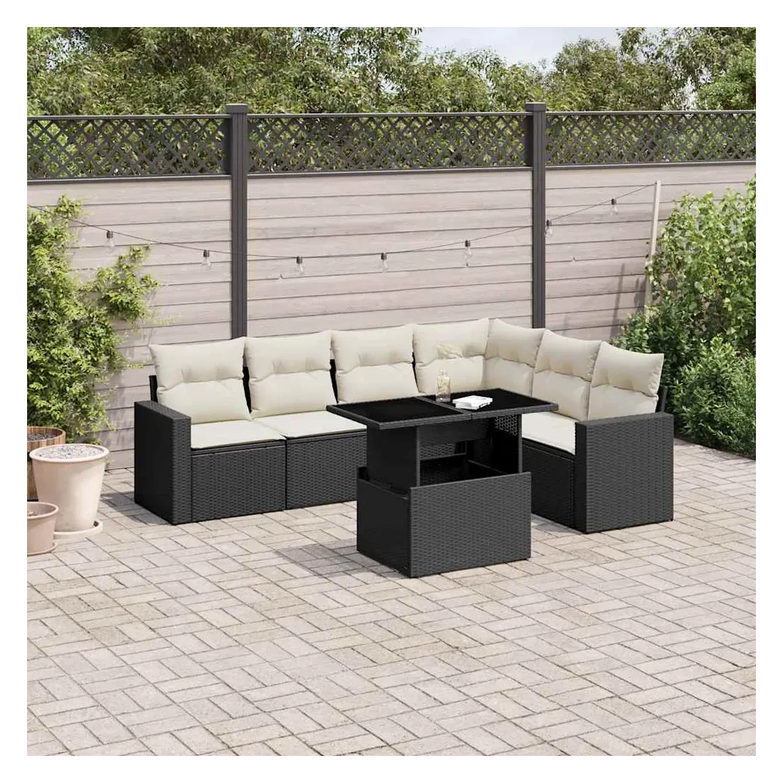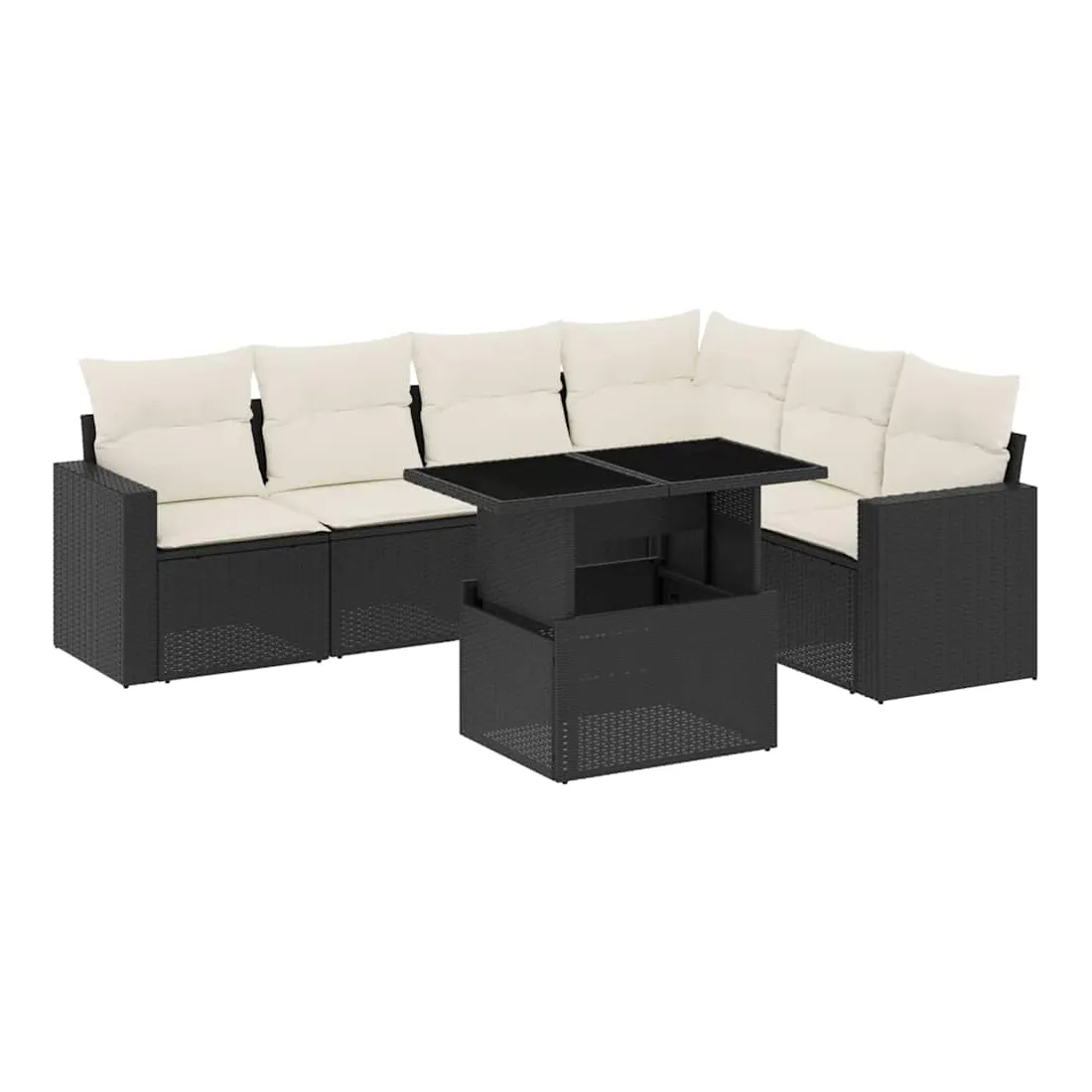 Salon de jardin 7 pcs avec coussins noir résine tressée