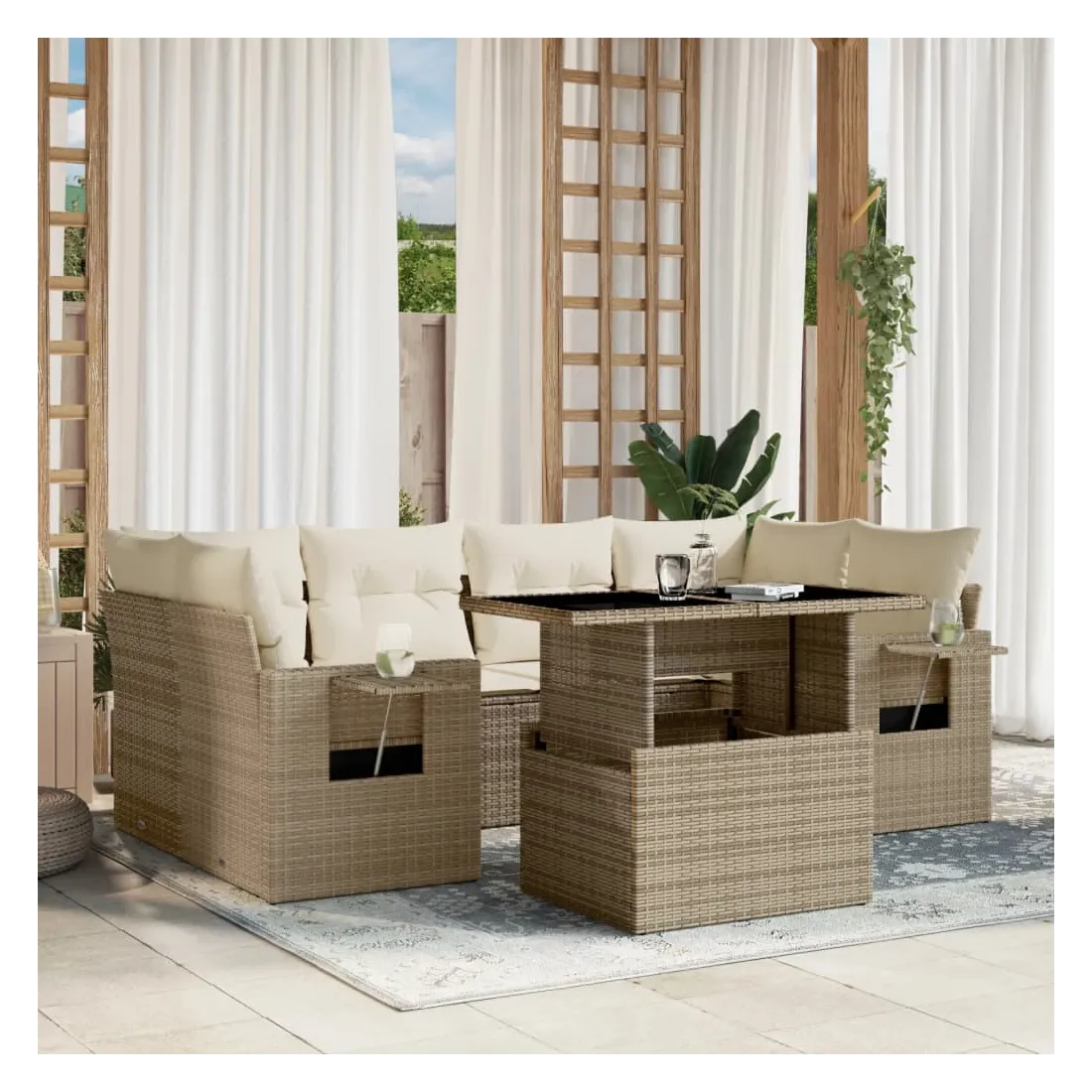 Cet ensemble de canapés de jardin est le complément parfait de votre arrière-cour, terrasse ou patio, offrant un espace confortable et accueillant pour discuter avec la famille et les amis ou simplement se détendre et profiter de l'extérieur. Matériau durable : la résine tressée, également connue sous le nom de poly rotin, est un matériau synthétique solide et nécessitant peu d'entretien qui ressemble au rotin naturel. Il est léger, facile à nettoyer et couramment utilisé pour les meubles d'extérieur en raison de sa durabilité et de ses propriétés de résistance aux intempéries.Dessus de table réglable : le dessus de table peut être soulevé pour rendre la table plus haute, ce qui transforme la table d'extérieur d'une table basse à une table de salle à manger. Elle est parfaite pour recevoir des invités ou prendre des repas à l'extérieur.Table d'appoint pratique : ce mobilier d'extérieur comprend des tables d'appoint pliables avec un ressort à gaz sur les accoudoirs, offrant des endroits pratiques pour garder vos essentiels à portée de main. Expérience d'assise confortable : ce mobilier d'extérieur, doté de coussins épais, offre une expérience d'assise confortable.Conception modulaire : cet ensemble de meubles d'extérieur a une conception modulaire, ce qui le rend complètement flexible et facile à déplacer, afin que vous puissiez créer un agencement de meubles d'extérieur personnalisé. Bon à savoir :Pour que vos meubles d'extérieur restent beaux, nous vous recommandons de les protéger avec une housse imperméable.