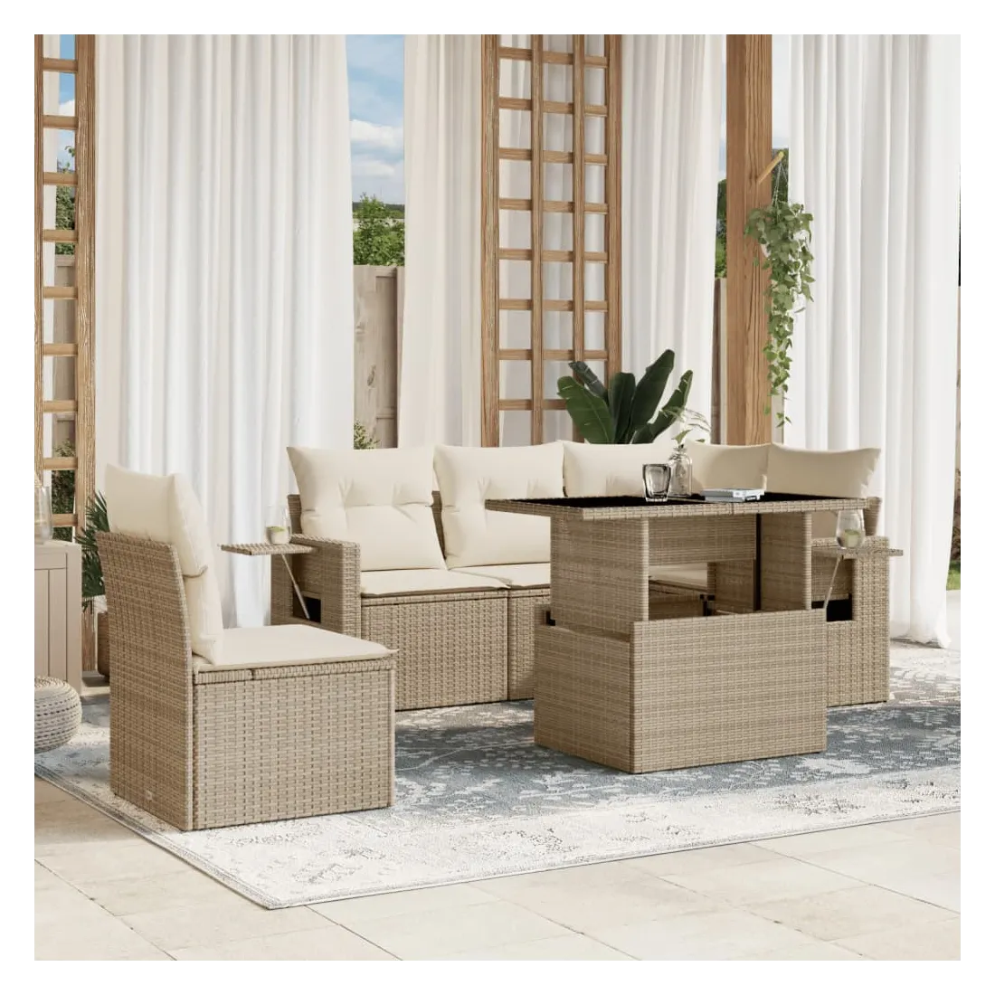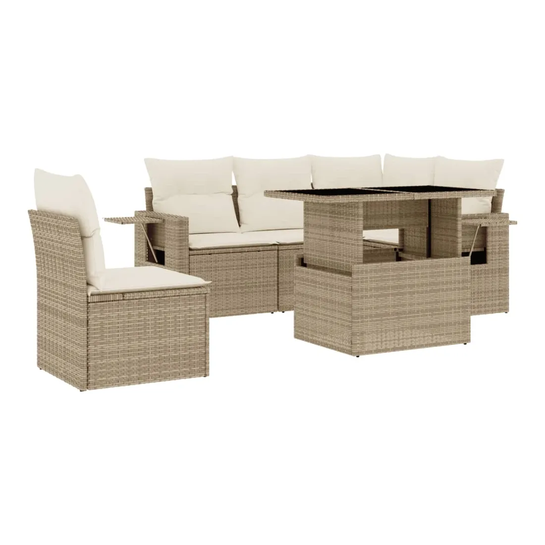 Salon de jardin avec coussins 6 pcs beige résine tressée