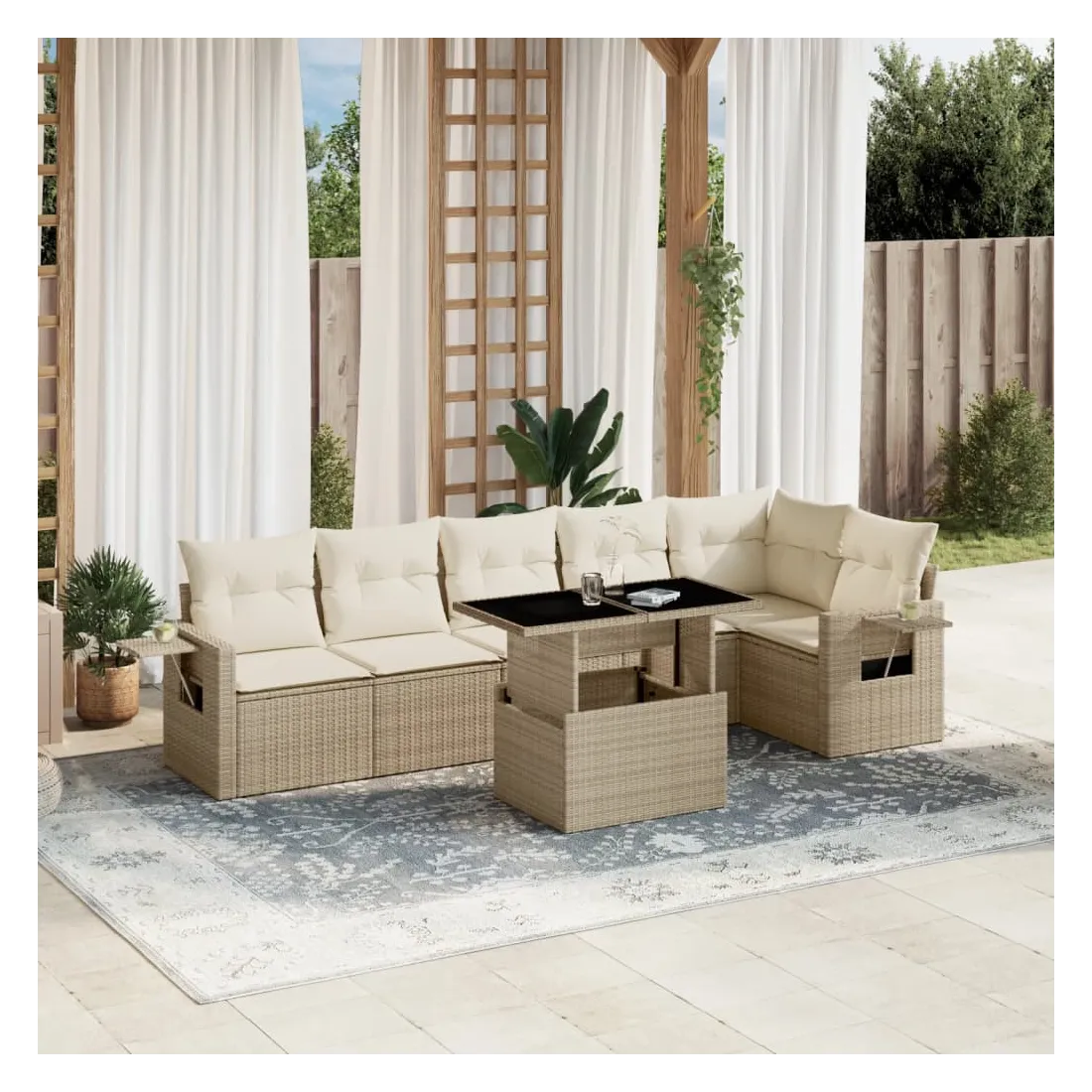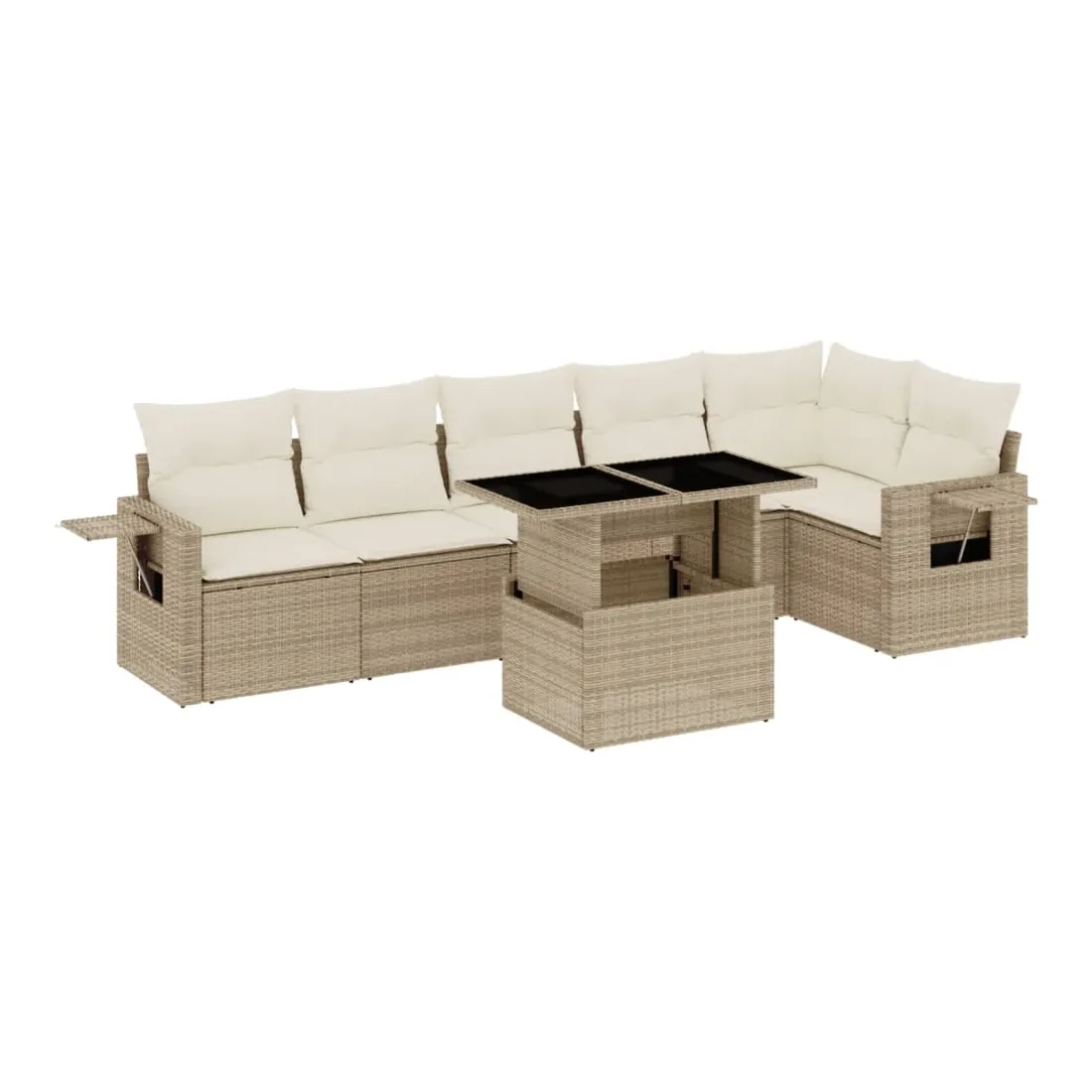 Salon de jardin avec coussins 7 pcs beige résine tressée