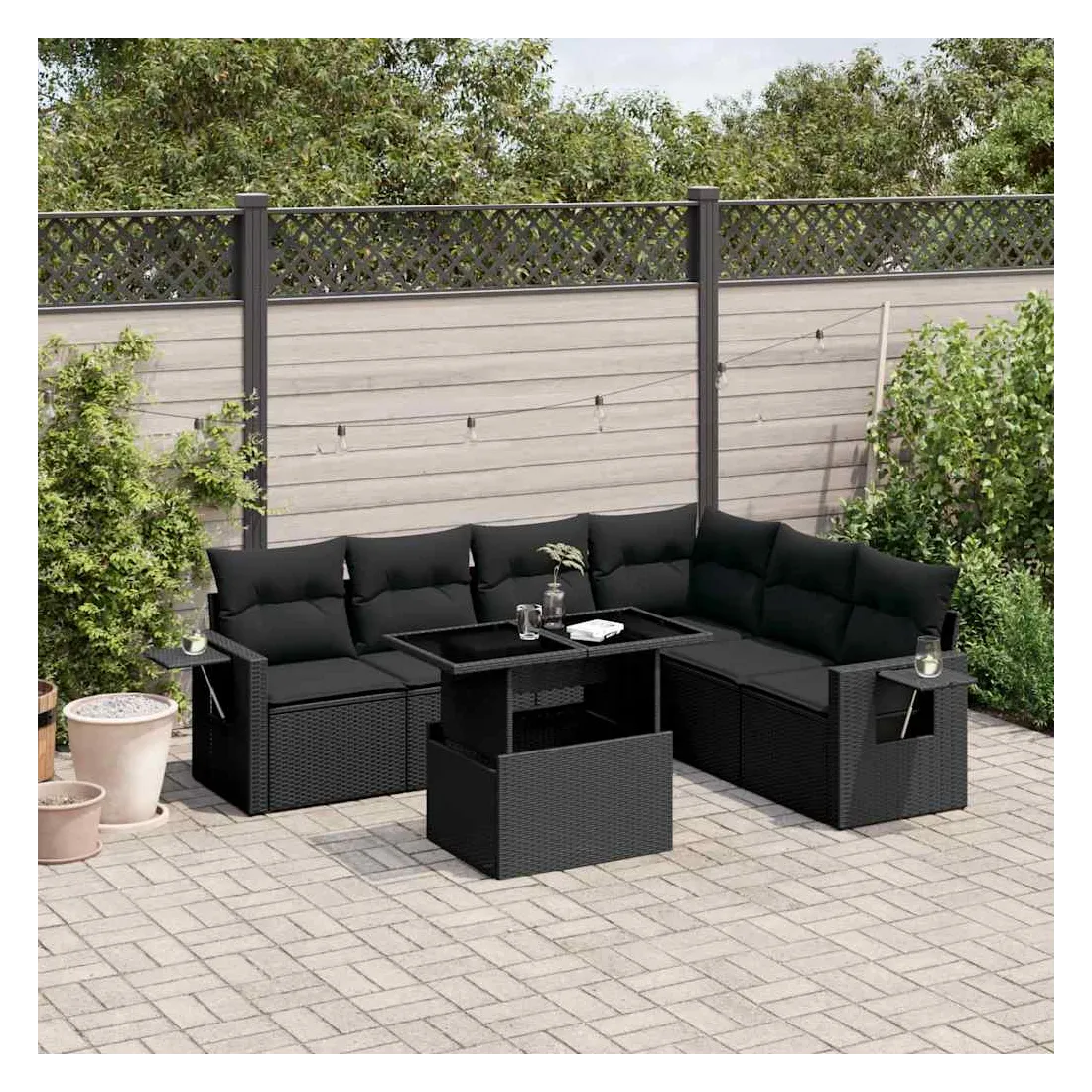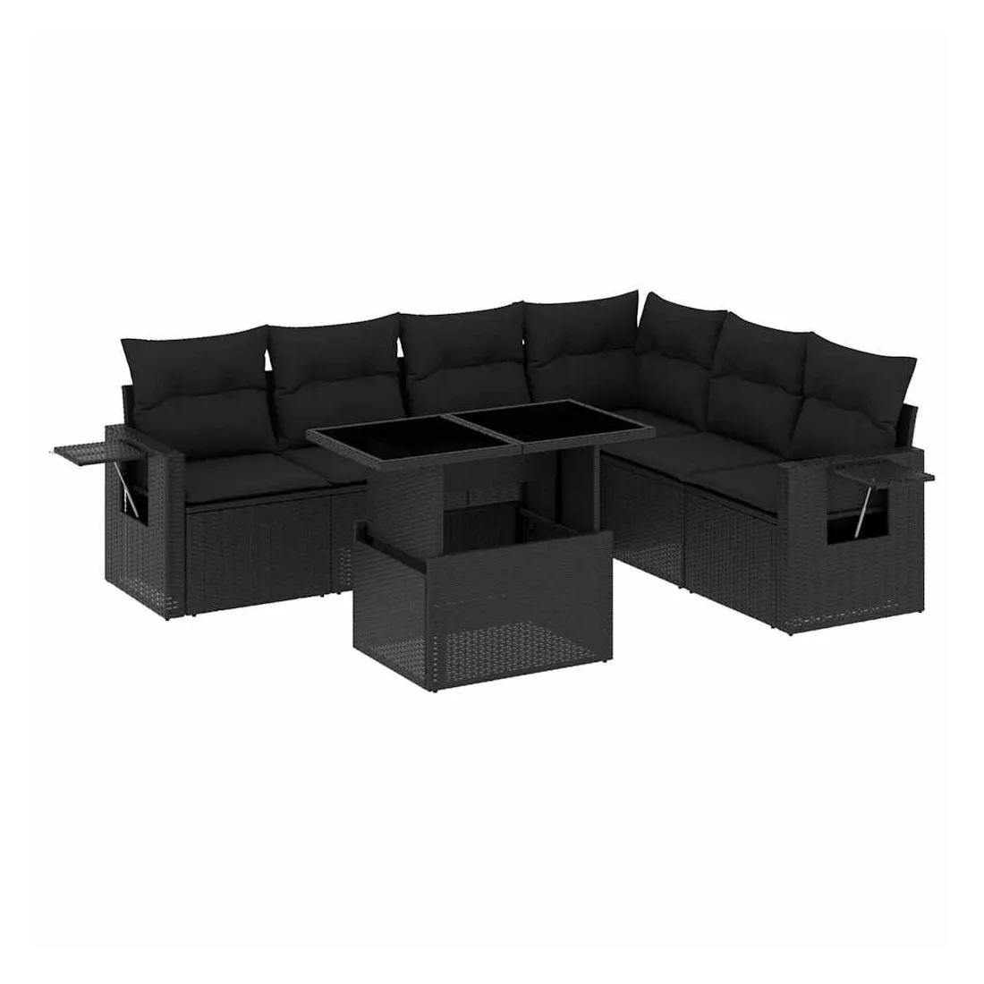 Salon de jardin 7 pcs avec coussins noir résine tressée
