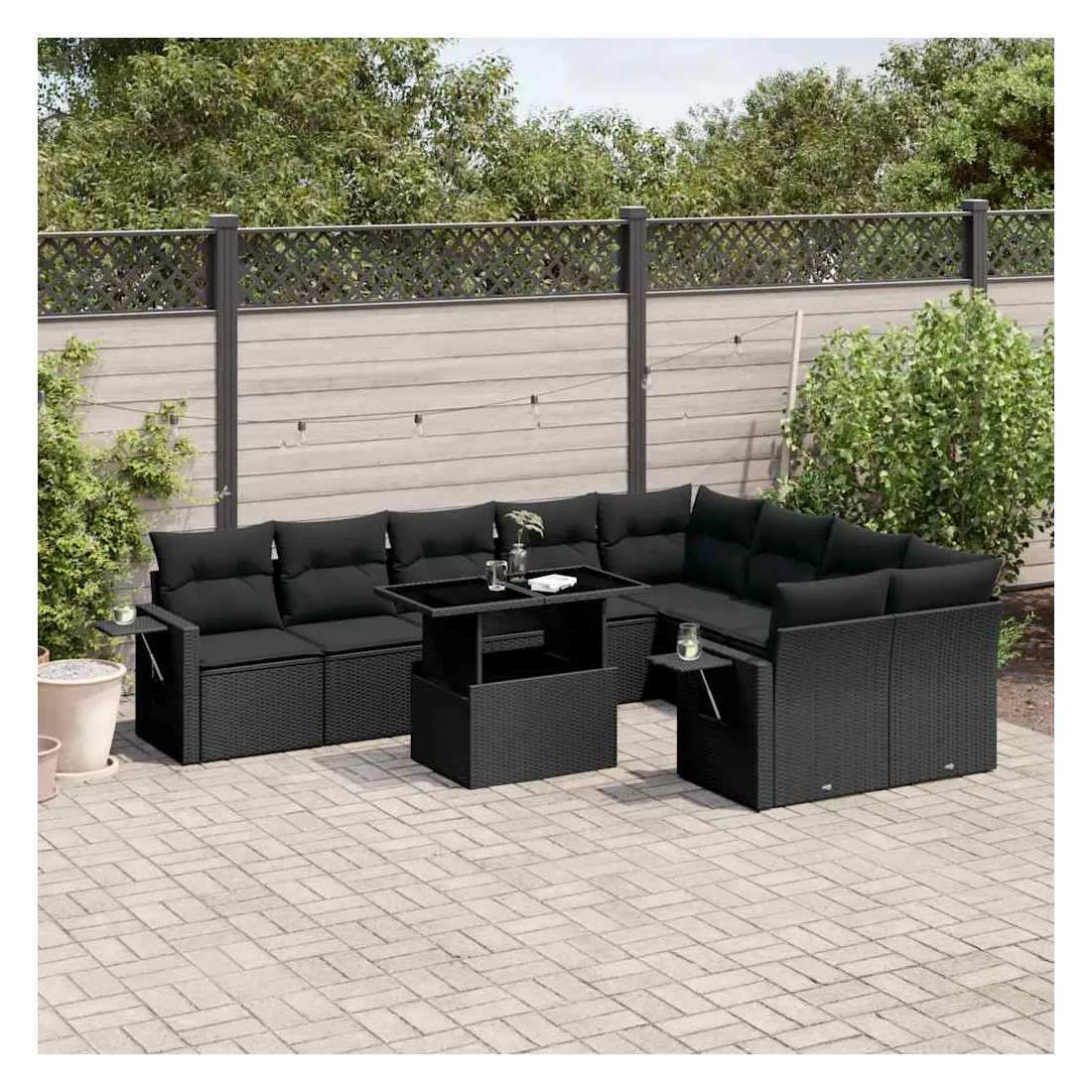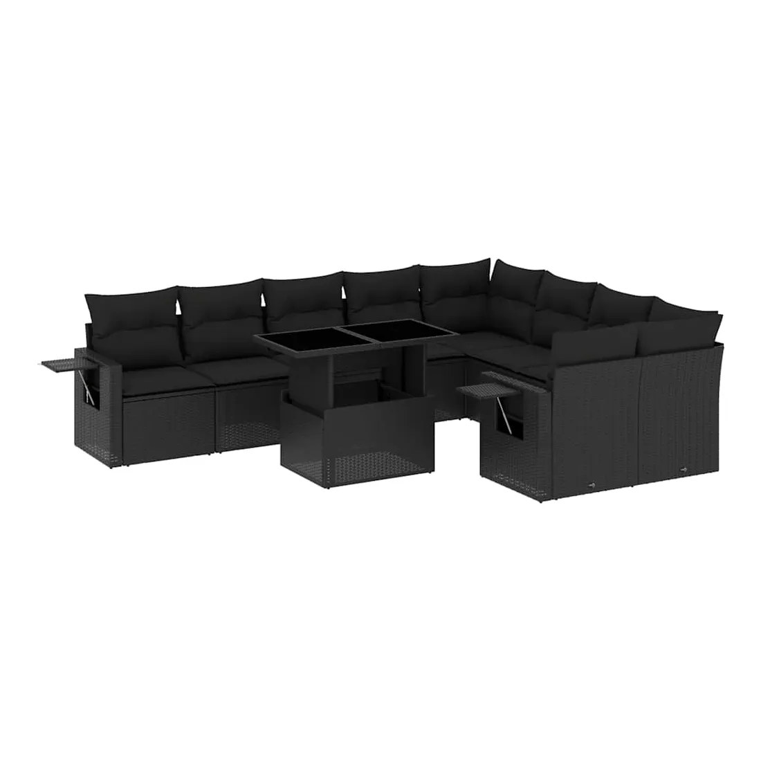 Salon de jardin 10 pcs avec coussins noir résine tressée
