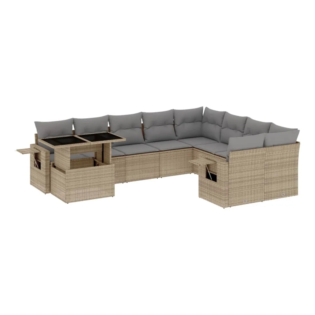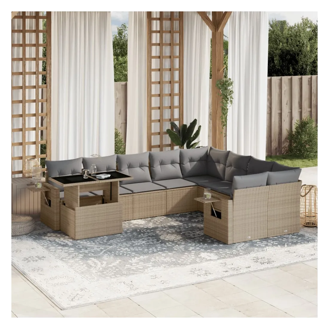 Salon de jardin avec coussins 10 pcs beige résine tressée
