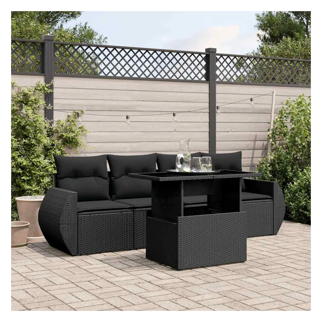 Cet ensemble de canapés de jardin est le complément parfait de votre arrière-cour, terrasse ou patio, offrant un espace confortable et accueillant pour discuter avec la famille et les amis ou simplement se détendre et profiter de l'extérieur. Matériau durable : la résine tressée, également connue sous le nom de poly rotin, est un matériau synthétique solide et nécessitant peu d'entretien qui ressemble au rotin naturel. Il est léger, facile à nettoyer et couramment utilisé pour les meubles d'extérieur en raison de sa durabilité et de ses propriétés de résistance aux intempéries.Dessus de table réglable : le dessus de table peut être soulevé pour rendre la table plus haute, ce qui transforme la table d'extérieur d'une table basse à une table de salle à manger. Elle est parfaite pour recevoir des invités ou prendre des repas à l'extérieur.Expérience d'assise confortable : ce mobilier d'extérieur, doté de coussins épais, offre une expérience d'assise confortable.Housse amovible et lavable : ces coussins de siège sont dotés de housses amovibles pour un lavage et un entretien faciles.Conception modulaire : cet ensemble de meubles d'extérieur a une conception modulaire, ce qui le rend complètement flexible et facile à déplacer, afin que vous puissiez créer un agencement de meubles d'extérieur personnalisé. Bon à savoir :Pour que vos meubles d'extérieur restent beaux, nous vous recommandons de les protéger avec une housse imperméable.
