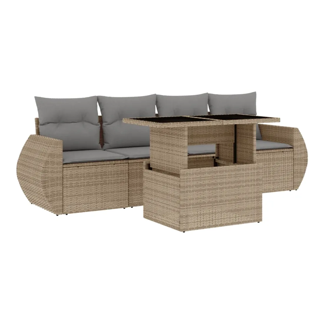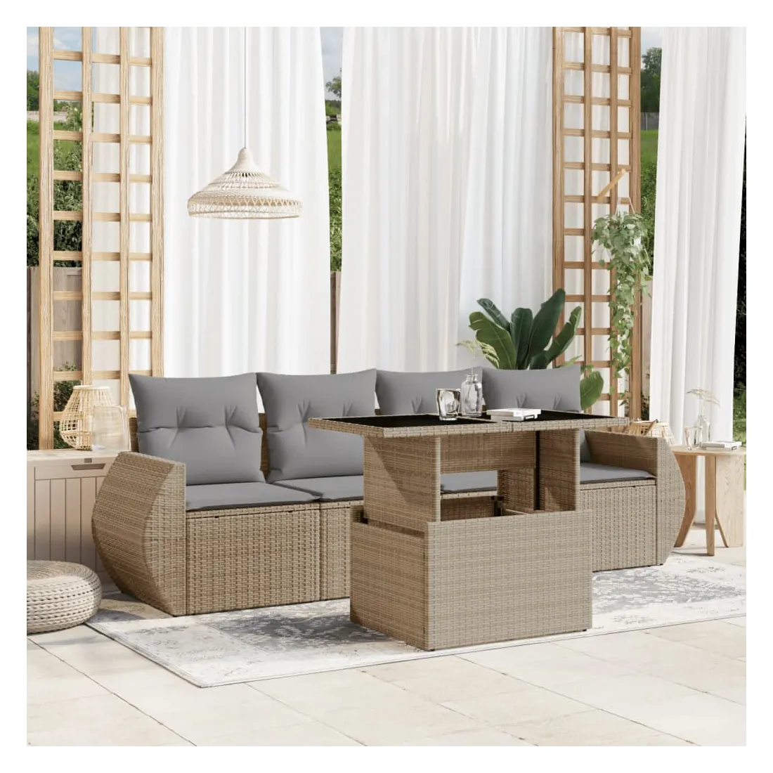 Cet ensemble de canapés de jardin est le complément parfait de votre arrière-cour, terrasse ou patio, offrant un espace confortable et accueillant pour discuter avec la famille et les amis ou simplement se détendre et profiter de l'extérieur. Matériau durable : la résine tressée, également connue sous le nom de poly rotin, est un matériau synthétique solide et nécessitant peu d'entretien qui ressemble au rotin naturel. Il est léger, facile à nettoyer et couramment utilisé pour les meubles d'extérieur en raison de sa durabilité et de ses propriétés de résistance aux intempéries.Dessus de table réglable : le dessus de table peut être soulevé pour rendre la table plus haute, ce qui transforme la table d'extérieur d'une table basse à une table de salle à manger. Elle est parfaite pour recevoir des invités ou prendre des repas à l'extérieur.Expérience d'assise confortable : ce mobilier d'extérieur, doté de coussins épais, offre une expérience d'assise confortable.Housse amovible et lavable : ces coussins de siège sont dotés de housses amovibles pour un lavage et un entretien faciles.Conception modulaire : cet ensemble de meubles d'extérieur a une conception modulaire, ce qui le rend complètement flexible et facile à déplacer, afin que vous puissiez créer un agencement de meubles d'extérieur personnalisé. Bon à savoir :Pour que vos meubles d'extérieur restent beaux, nous vous recommandons de les protéger avec une housse imperméable.