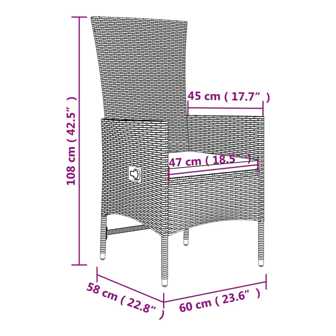 - Dimensions du siège : 47 x 45 cm (l x P)