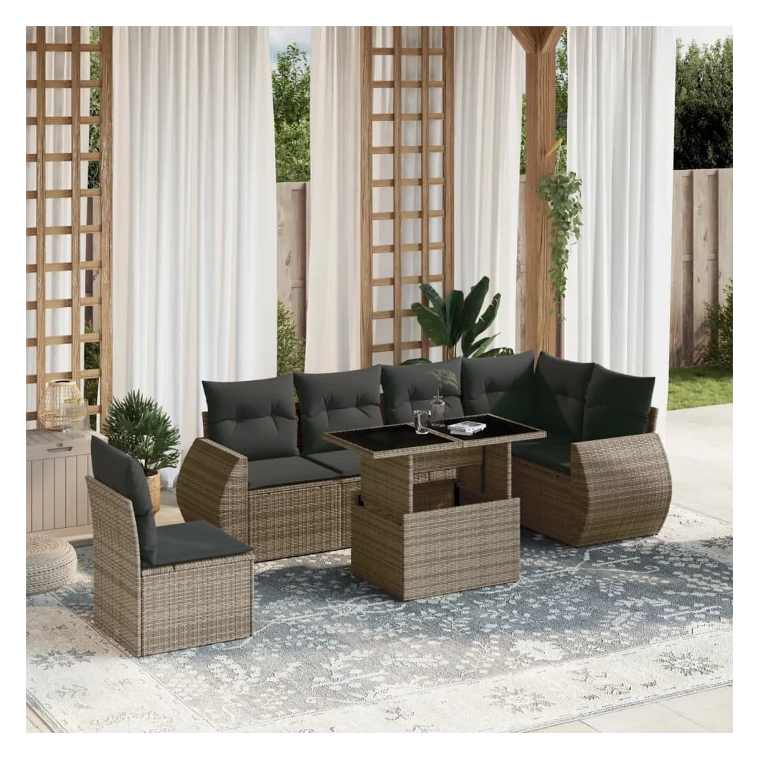 Cet ensemble de canapés de jardin est le complément parfait de votre arrière-cour, terrasse ou patio, offrant un espace confortable et accueillant pour discuter avec la famille et les amis ou simplement se détendre et profiter de l'extérieur. Matériau durable : la résine tressée, également connue sous le nom de poly rotin, est un matériau synthétique solide et nécessitant peu d'entretien qui ressemble au rotin naturel. Il est léger, facile à nettoyer et couramment utilisé pour les meubles d'extérieur en raison de sa durabilité et de ses propriétés de résistance aux intempéries.Dessus de table réglable : le dessus de table peut être soulevé pour rendre la table plus haute, ce qui transforme la table d'extérieur d'une table basse à une table de salle à manger. Elle est parfaite pour recevoir des invités ou prendre des repas à l'extérieur.Expérience d'assise confortable : ce mobilier d'extérieur, doté de coussins épais, offre une expérience d'assise confortable.Housse amovible et lavable : ces coussins de siège sont dotés de housses amovibles pour un lavage et un entretien faciles.Conception modulaire : cet ensemble de meubles d'extérieur a une conception modulaire, ce qui le rend complètement flexible et facile à déplacer, afin que vous puissiez créer un agencement de meubles d'extérieur personnalisé. Bon à savoir :Pour que vos meubles d'extérieur restent beaux, nous vous recommandons de les protéger avec une housse imperméable.
