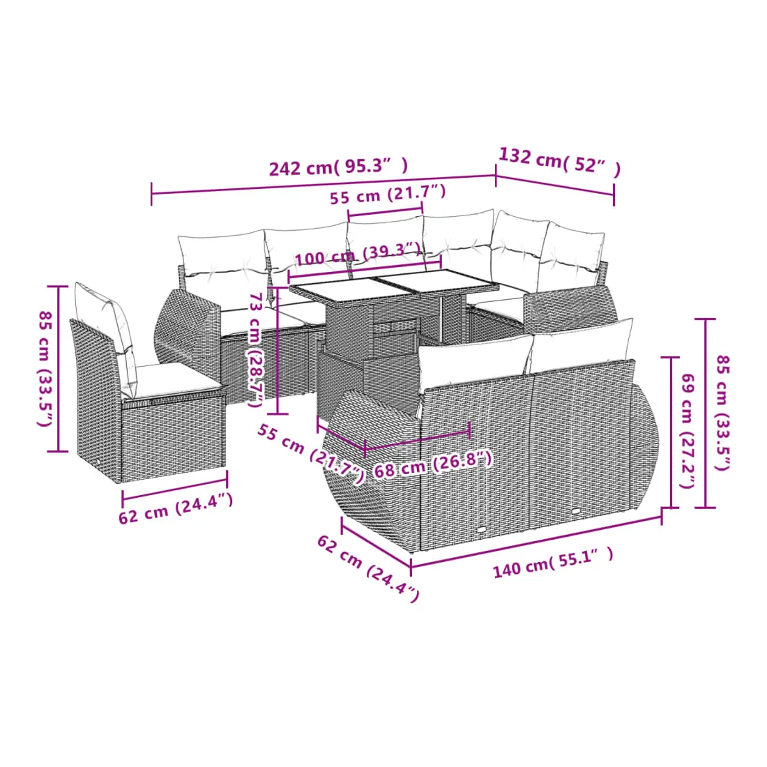 Cet ensemble de canapés de jardin est le complément parfait de votre arrière-cour, terrasse ou patio, offrant un espace confortable et accueillant pour discuter avec la famille et les amis ou simplement se détendre et profiter de l'extérieur. Matériau durable : la résine tressée, également connue sous le nom de poly rotin, est un matériau synthétique solide et nécessitant peu d'entretien qui ressemble au rotin naturel. Il est léger, facile à nettoyer et couramment utilisé pour les meubles d'extérieur en raison de sa durabilité et de ses propriétés de résistance aux intempéries.Dessus de table réglable : le dessus de table peut être soulevé pour rendre la table plus haute, ce qui transforme la table d'extérieur d'une table basse à une table de salle à manger. Elle est parfaite pour recevoir des invités ou prendre des repas à l'extérieur.Expérience d'assise confortable : ce mobilier d'extérieur, doté de coussins épais, offre une expérience d'assise confortable.Housse amovible et lavable : ces coussins de siège sont dotés de housses amovibles pour un lavage et un entretien faciles.Conception modulaire : cet ensemble de meubles d'extérieur a une conception modulaire, ce qui le rend complètement flexible et facile à déplacer, afin que vous puissiez créer un agencement de meubles d'extérieur personnalisé. Bon à savoir :Pour que vos meubles d'extérieur restent beaux, nous vous recommandons de les protéger avec une housse imperméable.