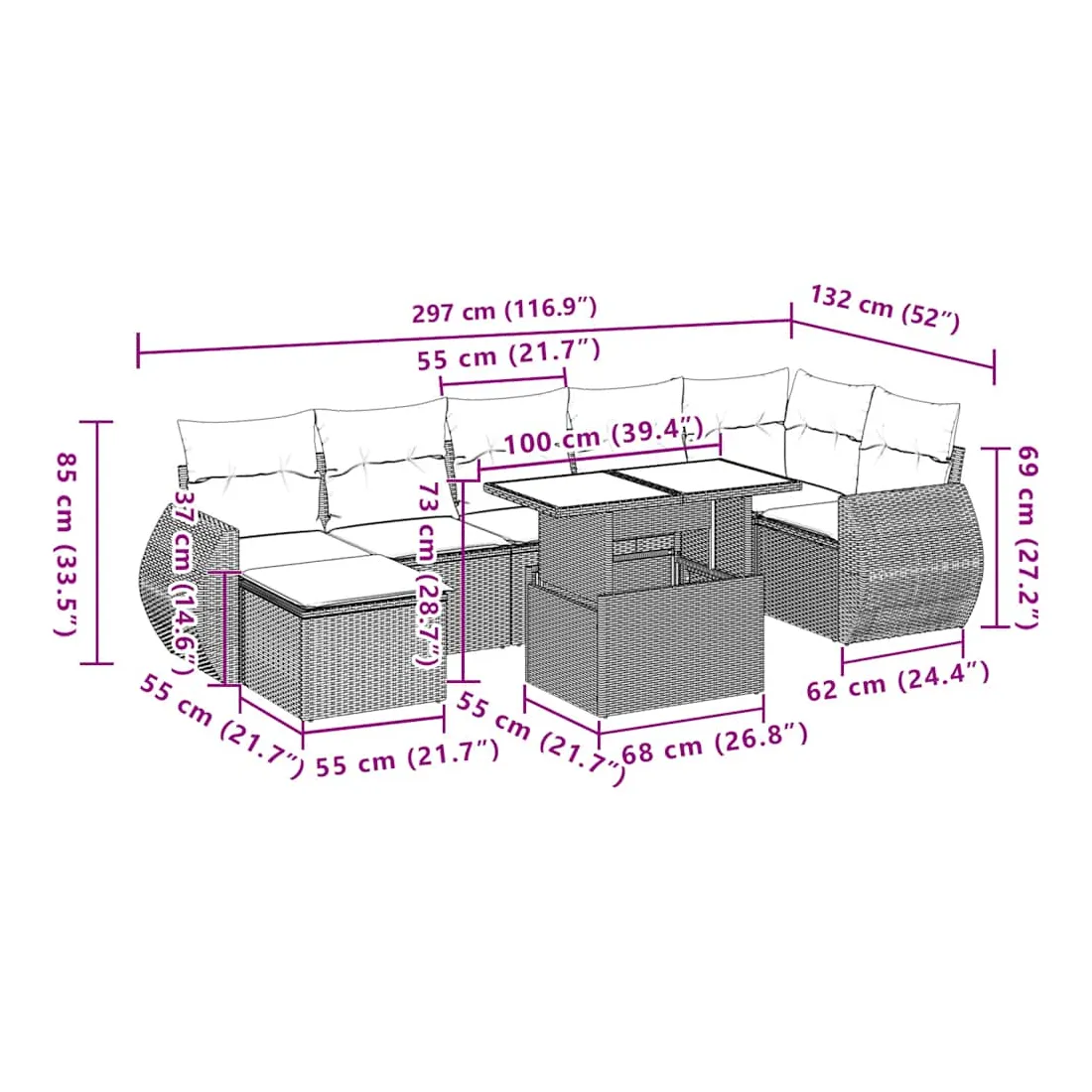 Cet ensemble de canapés de jardin est le complément parfait de votre arrière-cour, terrasse ou patio, offrant un espace confortable et accueillant pour discuter avec la famille et les amis ou simplement se détendre et profiter de l'extérieur. Matériau durable : la résine tressée, également connue sous le nom de poly rotin, est un matériau synthétique solide et nécessitant peu d'entretien qui ressemble au rotin naturel. Elle est légère, facile à nettoyer et couramment utilisée pour les meubles d'extérieur en raison de sa durabilité et de ses propriétés de résistance aux intempéries.Dessus de table réglable : le dessus de table peut être soulevé pour rendre la table plus haute, ce qui transforme la table d'extérieur d'une table basse à une table de salle à manger. Elle est parfaite pour recevoir des invités ou prendre des repas à l'extérieur.Expérience d'assise confortable : ce mobilier d'extérieur, doté de coussins épais, offre une expérience d'assise confortable.Housse amovible et lavable : ces coussins de siège sont dotés de housses amovibles pour un lavage et un entretien faciles.Conception modulaire : cet ensemble de meubles d'extérieur a une conception modulaire, ce qui le rend complètement flexible et facile à déplacer, afin que vous puissiez créer un agencement de meubles d'extérieur personnalisé. Bon à savoir :Pour que vos meubles d'extérieur restent beaux, nous vous recommandons de les protéger avec une housse imperméable.