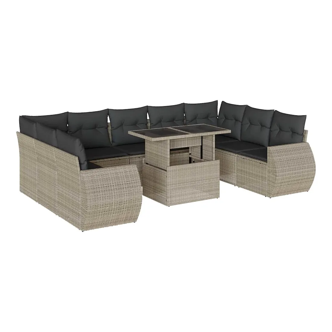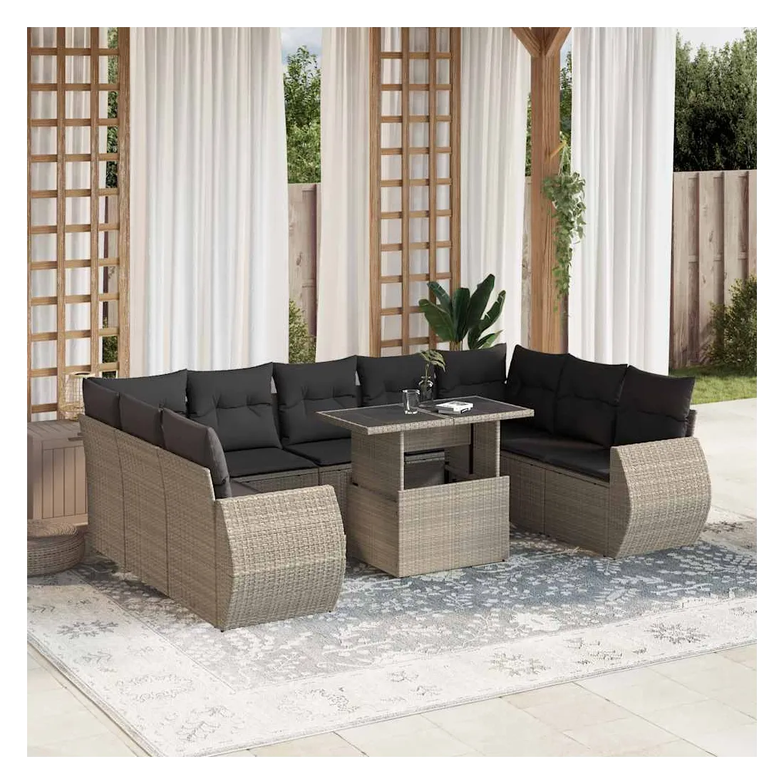 Cet ensemble de canapés de jardin est le complément parfait de votre arrière-cour, terrasse ou patio, offrant un espace confortable et accueillant pour discuter avec la famille et les amis ou simplement se détendre et profiter de l'extérieur. Matériau durable : la résine tressée, également connue sous le nom de poly rotin, est un matériau synthétique solide et nécessitant peu d'entretien qui ressemble au rotin naturel. Elle est légère, facile à nettoyer et couramment utilisée pour les meubles d'extérieur en raison de sa durabilité et de ses propriétés de résistance aux intempéries.Dessus de table réglable : le dessus de table peut être soulevé pour rendre la table plus haute, ce qui transforme la table d'extérieur d'une table basse à une table de salle à manger. Elle est parfaite pour recevoir des invités ou prendre des repas à l'extérieur.Expérience d'assise confortable : ce mobilier d'extérieur, doté de coussins épais, offre une expérience d'assise confortable.Housse amovible et lavable : ces coussins de siège sont dotés de housses amovibles pour un lavage et un entretien faciles.Conception modulaire : cet ensemble de meubles d'extérieur a une conception modulaire, ce qui le rend complètement flexible et facile à déplacer, afin que vous puissiez créer un agencement de meubles d'extérieur personnalisé. Bon à savoir :Pour que vos meubles d'extérieur restent beaux, nous vous recommandons de les protéger avec une housse imperméable.