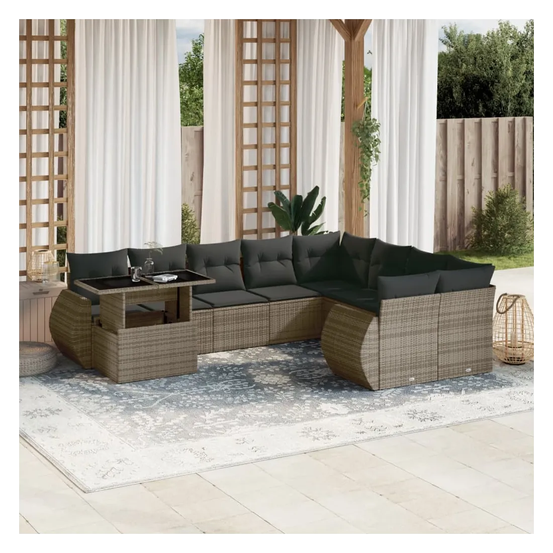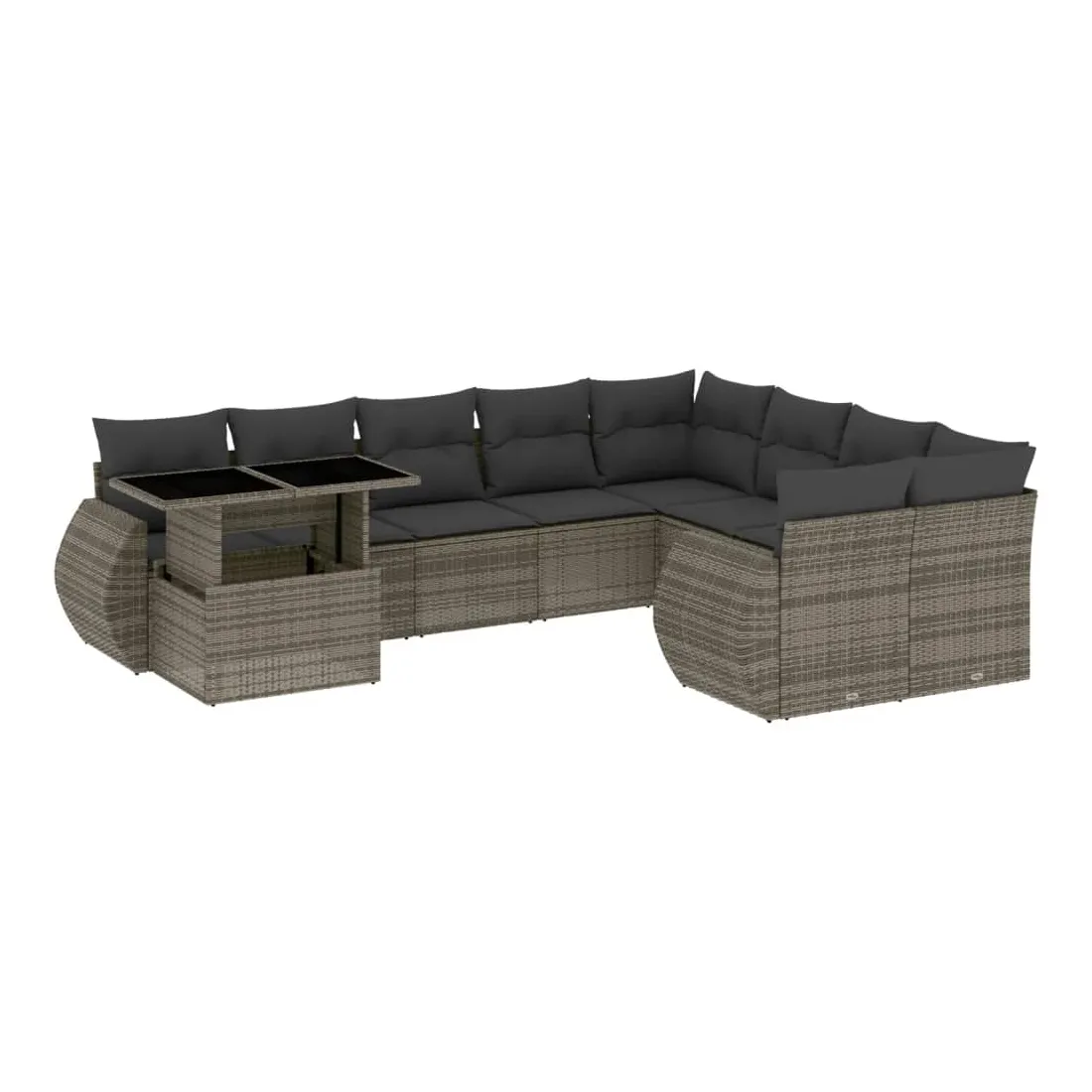 Salon de jardin avec coussins 10 pcs gris résine tressée