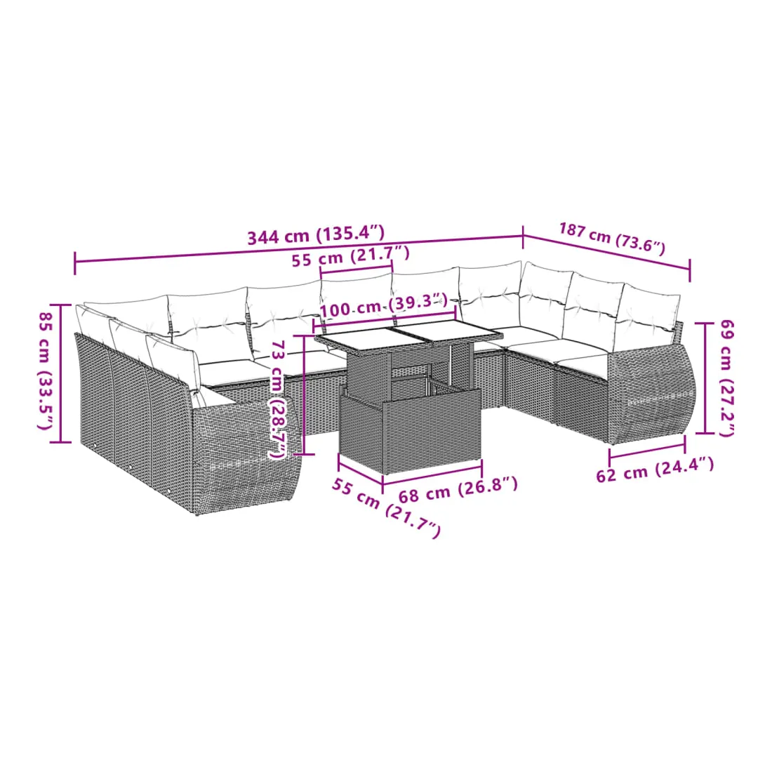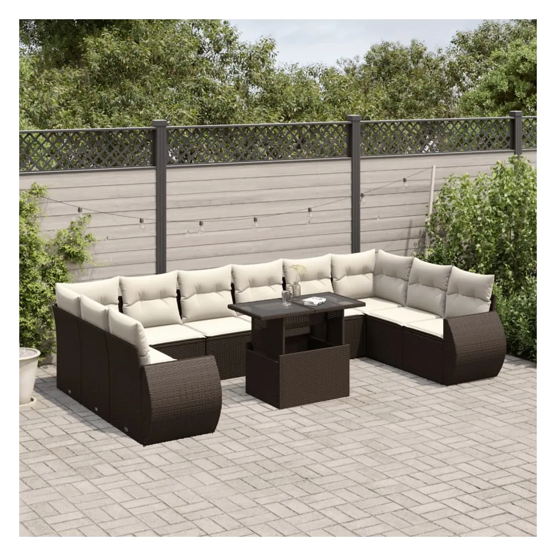 Cet ensemble de canapés de jardin est le complément parfait de votre arrière-cour, terrasse ou patio, offrant un espace confortable et accueillant pour discuter avec la famille et les amis ou simplement se détendre et profiter de l'extérieur. Matériau durable : la résine tressée, également connue sous le nom de poly rotin, est un matériau synthétique solide et nécessitant peu d'entretien qui ressemble au rotin naturel. Elle est légère, facile à nettoyer et couramment utilisée pour les meubles d'extérieur en raison de sa durabilité et de ses propriétés de résistance aux intempéries.Dessus de table réglable : le dessus de table peut être soulevé pour rendre la table plus haute, ce qui transforme la table d'extérieur d'une table basse à une table de salle à manger. Elle est parfaite pour recevoir des invités ou prendre des repas à l'extérieur.Expérience d'assise confortable : ce mobilier d'extérieur, doté de coussins épais, offre une expérience d'assise confortable.Housse amovible et lavable : ces coussins de siège sont dotés de housses amovibles pour un lavage et un entretien faciles.Conception modulaire : cet ensemble de meubles d'extérieur a une conception modulaire, ce qui le rend complètement flexible et facile à déplacer, afin que vous puissiez créer un agencement de meubles d'extérieur personnalisé. Bon à savoir :Pour que vos meubles d'extérieur restent beaux, nous vous recommandons de les protéger avec une housse imperméable.