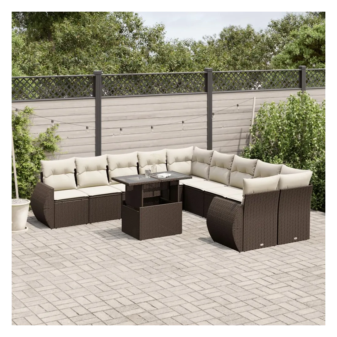 Cet ensemble de canapés de jardin est le complément parfait de votre arrière-cour, terrasse ou patio, offrant un espace confortable et accueillant pour discuter avec la famille et les amis ou simplement se détendre et profiter de l'extérieur. Matériau durable : la résine tressée, également connue sous le nom de poly rotin, est un matériau synthétique solide et nécessitant peu d'entretien qui ressemble au rotin naturel. Elle est légère, facile à nettoyer et couramment utilisée pour les meubles d'extérieur en raison de sa durabilité et de ses propriétés de résistance aux intempéries.Dessus de table réglable : le dessus de table peut être soulevé pour rendre la table plus haute, ce qui transforme la table d'extérieur d'une table basse à une table de salle à manger. Elle est parfaite pour recevoir des invités ou prendre des repas à l'extérieur.Expérience d'assise confortable : ce mobilier d'extérieur, doté de coussins épais, offre une expérience d'assise confortable.Housse amovible et lavable : ces coussins de siège sont dotés de housses amovibles pour un lavage et un entretien faciles.Conception modulaire : cet ensemble de meubles d'extérieur a une conception modulaire, ce qui le rend complètement flexible et facile à déplacer, afin que vous puissiez créer un agencement de meubles d'extérieur personnalisé. Bon à savoir :Pour que vos meubles d'extérieur restent beaux, nous vous recommandons de les protéger avec une housse imperméable.