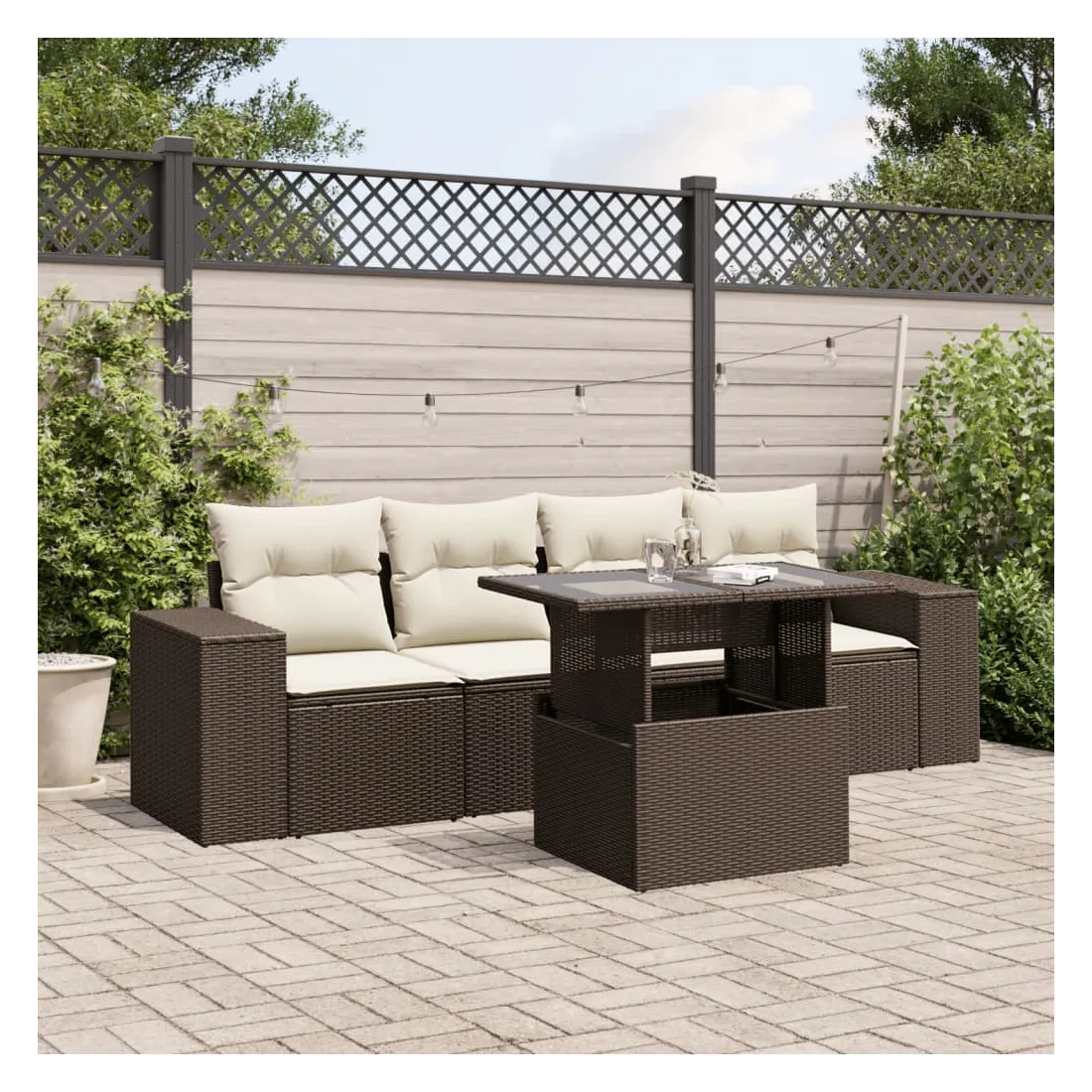 Cet ensemble de canapés de jardin est le complément parfait de votre arrière-cour, terrasse ou patio, offrant un espace confortable et accueillant pour discuter avec la famille et les amis ou simplement se détendre et profiter de l'extérieur. Matériau durable : la résine tressée, également connue sous le nom de poly rotin, est un matériau synthétique solide et nécessitant peu d'entretien qui ressemble au rotin naturel. Elle est légère, facile à nettoyer et couramment utilisée pour les meubles d'extérieur en raison de sa durabilité et de ses propriétés de résistance aux intempéries.Dessus de table réglable : le dessus de table peut être soulevé pour rendre la table plus haute, ce qui transforme la table d'extérieur d'une table basse à une table de salle à manger. Elle est parfaite pour recevoir des invités ou prendre des repas à l'extérieur.Expérience d'assise confortable : ce mobilier d'extérieur, doté de coussins épais, offre une expérience d'assise confortable.Housse amovible et lavable : ces coussins de siège sont dotés de housses amovibles pour un lavage et un entretien faciles.Conception modulaire : cet ensemble de meubles d'extérieur a une conception modulaire, ce qui le rend complètement flexible et facile à déplacer, afin que vous puissiez créer un agencement de meubles d'extérieur personnalisé. Bon à savoir :Pour que vos meubles d'extérieur restent beaux, nous vous recommandons de les protéger avec une housse imperméable.