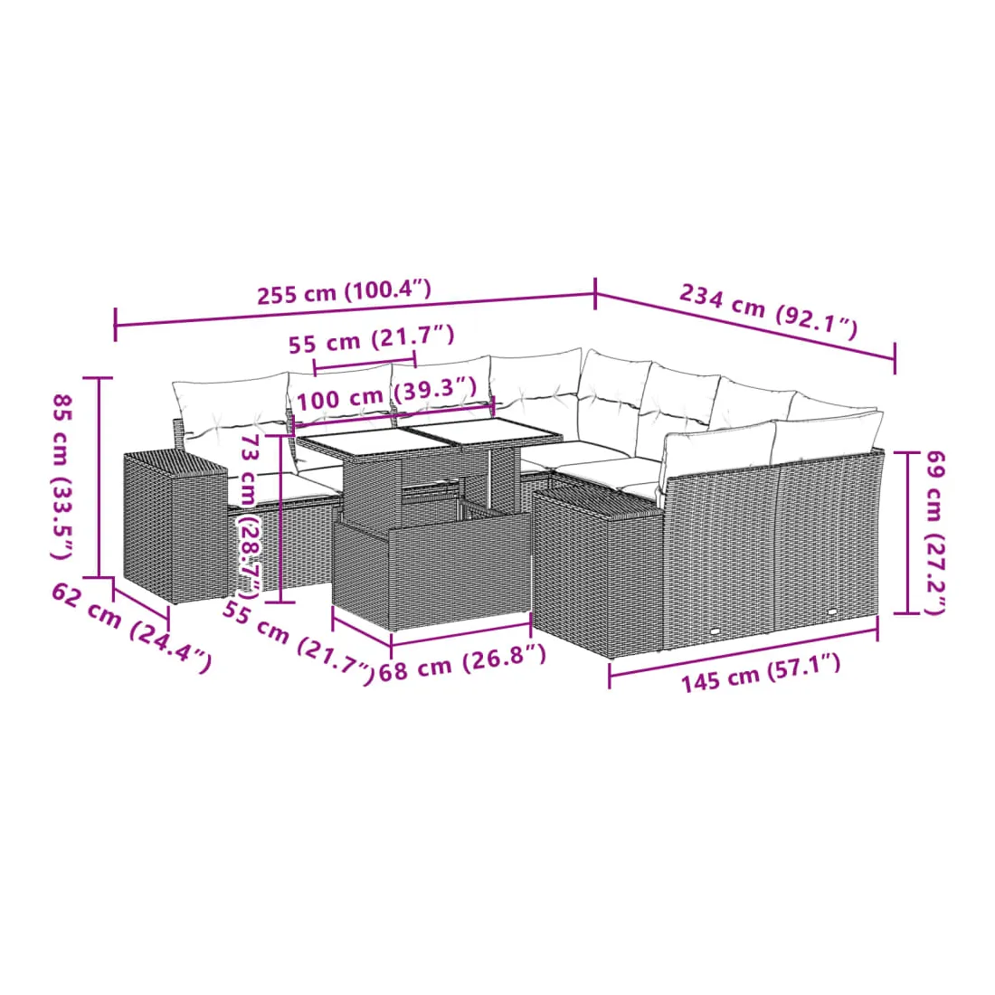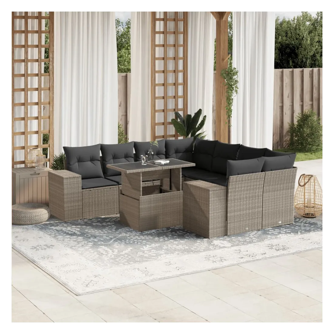 Cet ensemble de canapés de jardin est le complément parfait de votre arrière-cour, terrasse ou patio, offrant un espace confortable et accueillant pour discuter avec la famille et les amis ou simplement se détendre et profiter de l'extérieur. Matériau durable : la résine tressée, également connue sous le nom de poly rotin, est un matériau synthétique solide et nécessitant peu d'entretien qui ressemble au rotin naturel. Elle est légère, facile à nettoyer et couramment utilisée pour les meubles d'extérieur en raison de sa durabilité et de ses propriétés de résistance aux intempéries.Dessus de table réglable : le dessus de table peut être soulevé pour rendre la table plus haute, ce qui transforme la table d'extérieur d'une table basse à une table de salle à manger. Elle est parfaite pour recevoir des invités ou prendre des repas à l'extérieur.Expérience d'assise confortable : ce mobilier d'extérieur, doté de coussins épais, offre une expérience d'assise confortable.Housse amovible et lavable : ces coussins de siège sont dotés de housses amovibles pour un lavage et un entretien faciles.Conception modulaire : cet ensemble de meubles d'extérieur a une conception modulaire, ce qui le rend complètement flexible et facile à déplacer, afin que vous puissiez créer un agencement de meubles d'extérieur personnalisé. Bon à savoir :Pour que vos meubles d'extérieur restent beaux, nous vous recommandons de les protéger avec une housse imperméable.