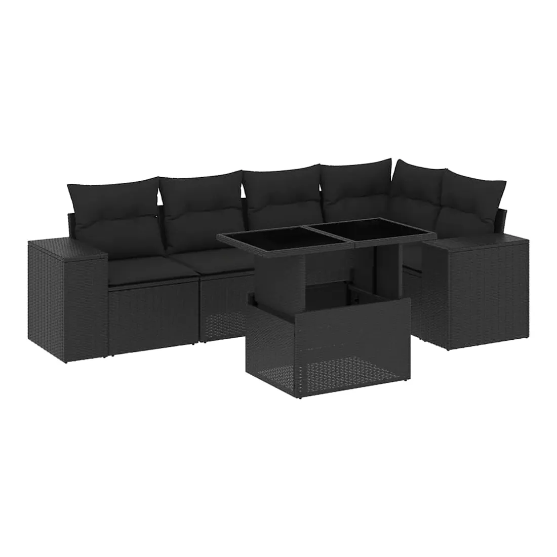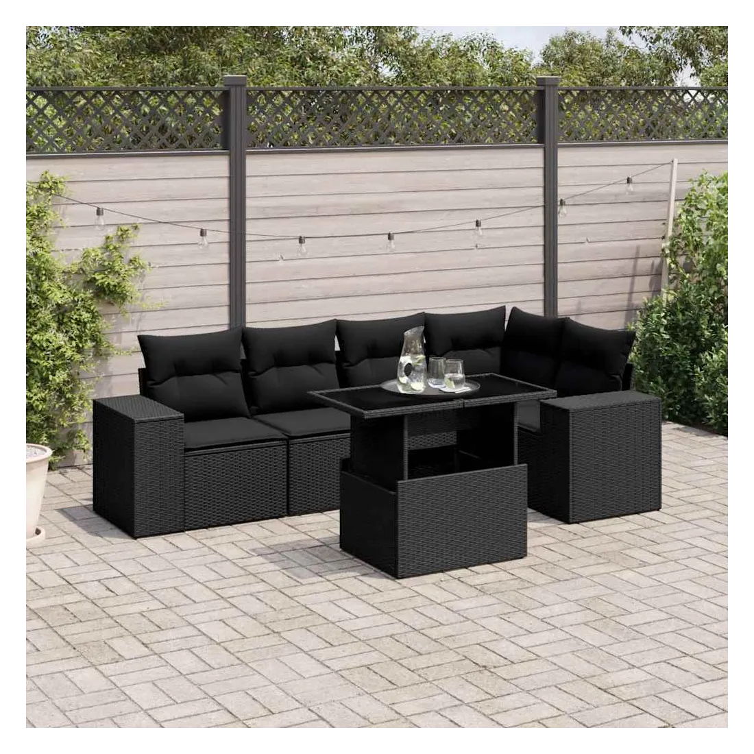 Salon de jardin 6 pcs avec coussins noir résine tressée