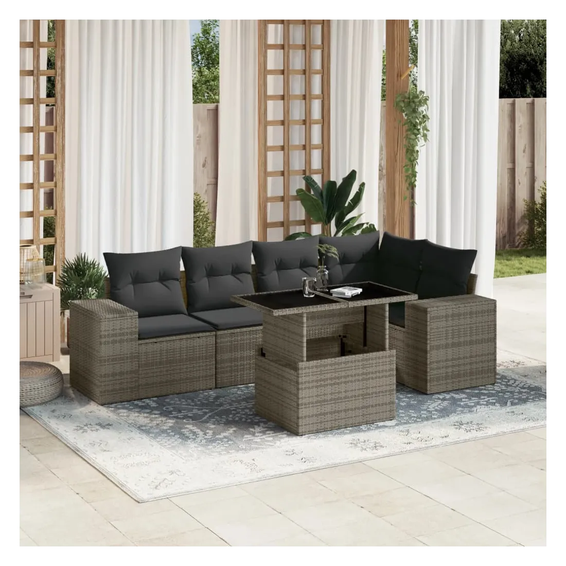 Cet ensemble de canapés de jardin est le complément parfait de votre arrière-cour, terrasse ou patio, offrant un espace confortable et accueillant pour discuter avec la famille et les amis ou simplement se détendre et profiter de l'extérieur. Matériau durable : la résine tressée, également connue sous le nom de poly rotin, est un matériau synthétique solide et nécessitant peu d'entretien qui ressemble au rotin naturel. Il est léger, facile à nettoyer et couramment utilisé pour les meubles d'extérieur en raison de sa durabilité et de ses propriétés de résistance aux intempéries.Dessus de table réglable : le dessus de table peut être soulevé pour rendre la table plus haute, ce qui transforme la table d'extérieur d'une table basse à une table de salle à manger. Elle est parfaite pour recevoir des invités ou prendre des repas à l'extérieur.Expérience d'assise confortable : ce mobilier d'extérieur, doté de coussins épais, offre une expérience d'assise confortable.Housse amovible et lavable : ces coussins de siège sont dotés de housses amovibles pour un lavage et un entretien faciles.Conception modulaire : cet ensemble de meubles d'extérieur a une conception modulaire, ce qui le rend complètement flexible et facile à déplacer, afin que vous puissiez créer un agencement de meubles d'extérieur personnalisé. Bon à savoir :Pour que vos meubles d'extérieur restent beaux, nous vous recommandons de les protéger avec une housse imperméable.