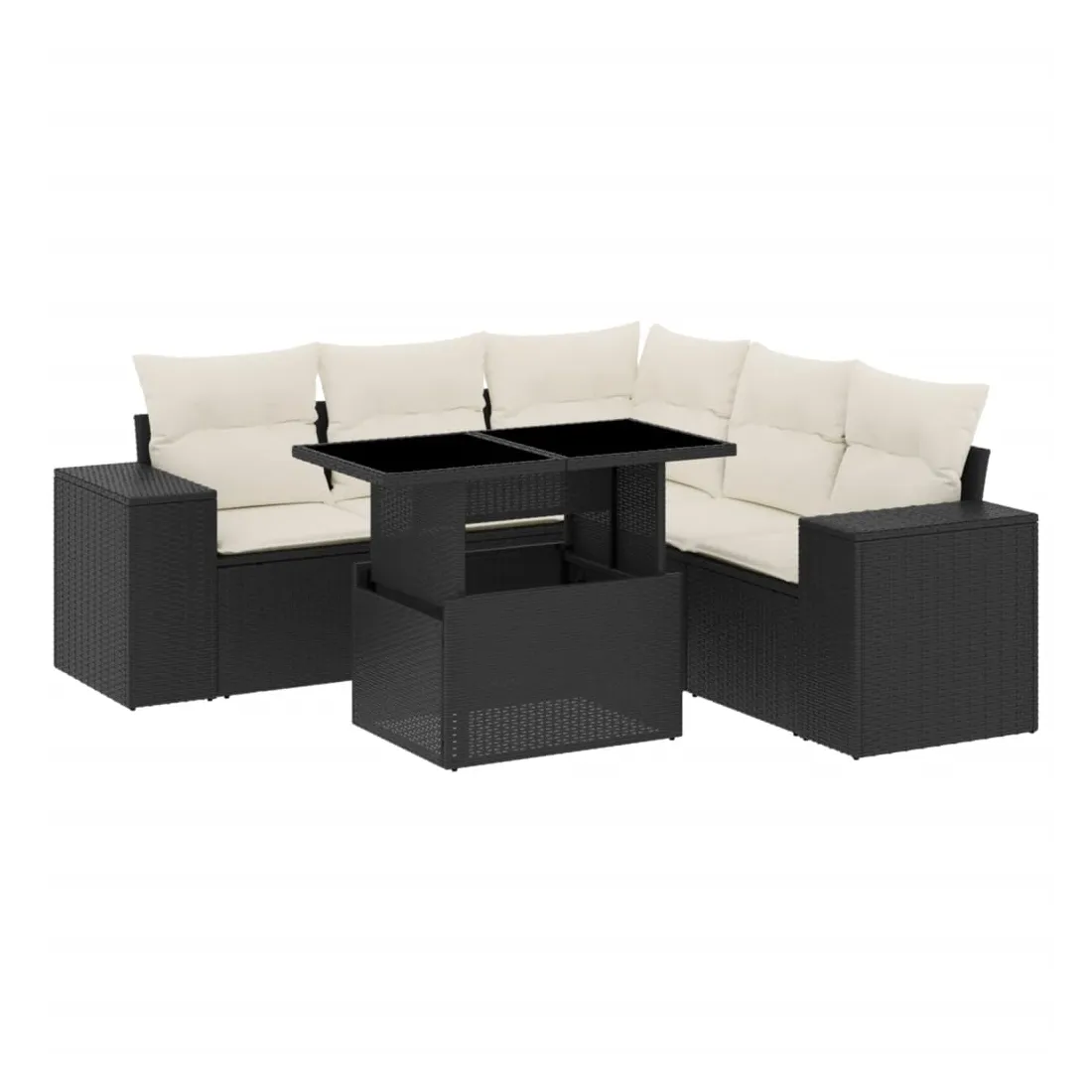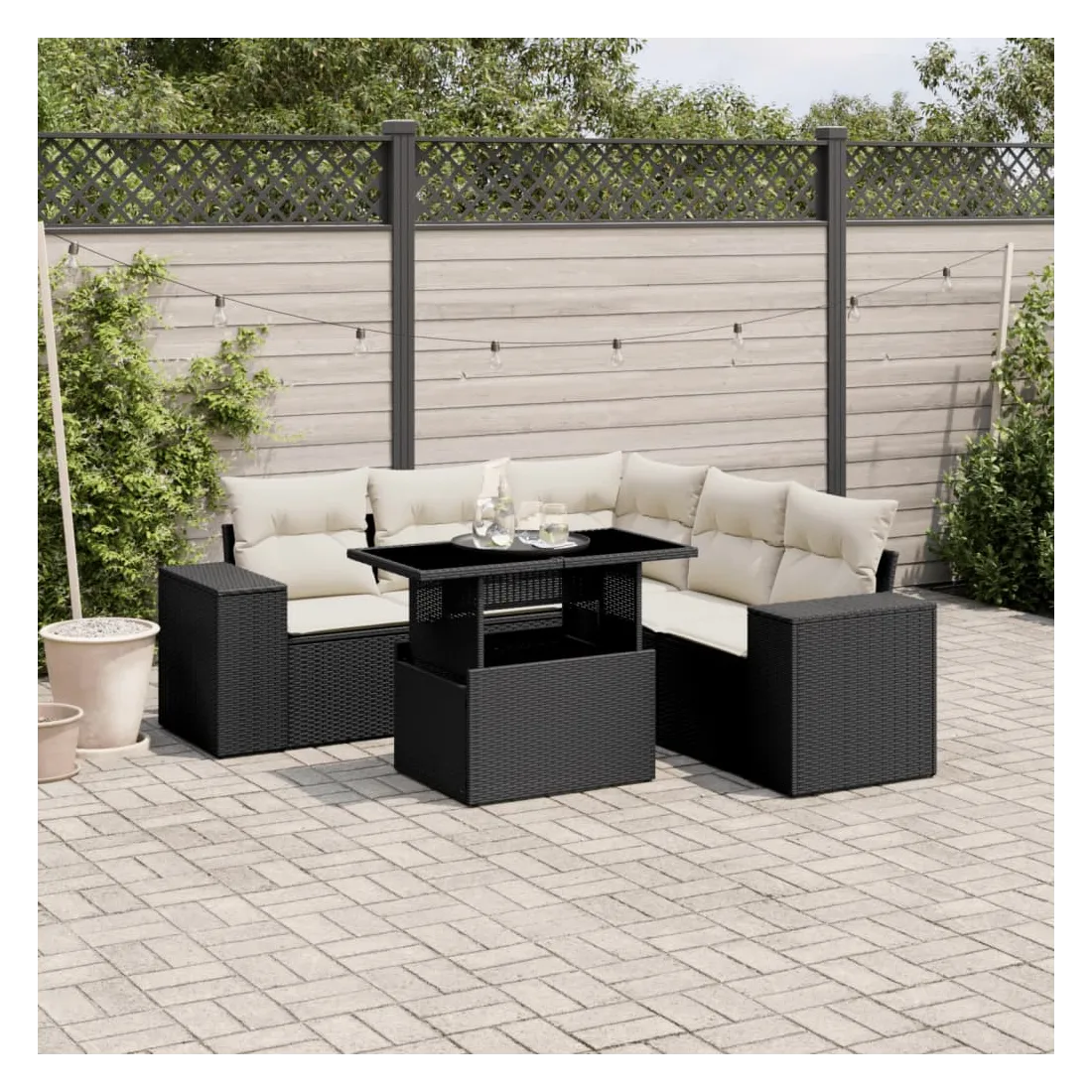 Salon de jardin 6 pcs avec coussins noir résine tressée