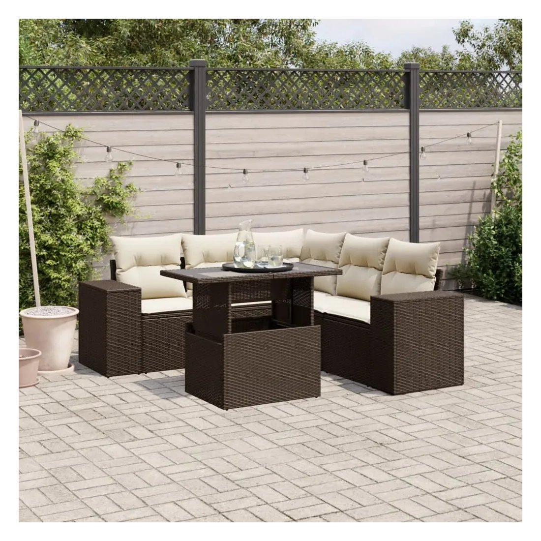 Cet ensemble de canapés de jardin est le complément parfait de votre arrière-cour, terrasse ou patio, offrant un espace confortable et accueillant pour discuter avec la famille et les amis ou simplement se détendre et profiter de l'extérieur. Matériau durable : la résine tressée, également connue sous le nom de poly rotin, est un matériau synthétique solide et nécessitant peu d'entretien qui ressemble au rotin naturel. Elle est légère, facile à nettoyer et couramment utilisée pour les meubles d'extérieur en raison de sa durabilité et de ses propriétés de résistance aux intempéries.Dessus de table réglable : le dessus de table peut être soulevé pour rendre la table plus haute, ce qui transforme la table d'extérieur d'une table basse à une table de salle à manger. Elle est parfaite pour recevoir des invités ou prendre des repas à l'extérieur.Expérience d'assise confortable : ce mobilier d'extérieur, doté de coussins épais, offre une expérience d'assise confortable.Housse amovible et lavable : ces coussins de siège sont dotés de housses amovibles pour un lavage et un entretien faciles.Conception modulaire : cet ensemble de meubles d'extérieur a une conception modulaire, ce qui le rend complètement flexible et facile à déplacer, afin que vous puissiez créer un agencement de meubles d'extérieur personnalisé. Bon à savoir :Pour que vos meubles d'extérieur restent beaux, nous vous recommandons de les protéger avec une housse imperméable.