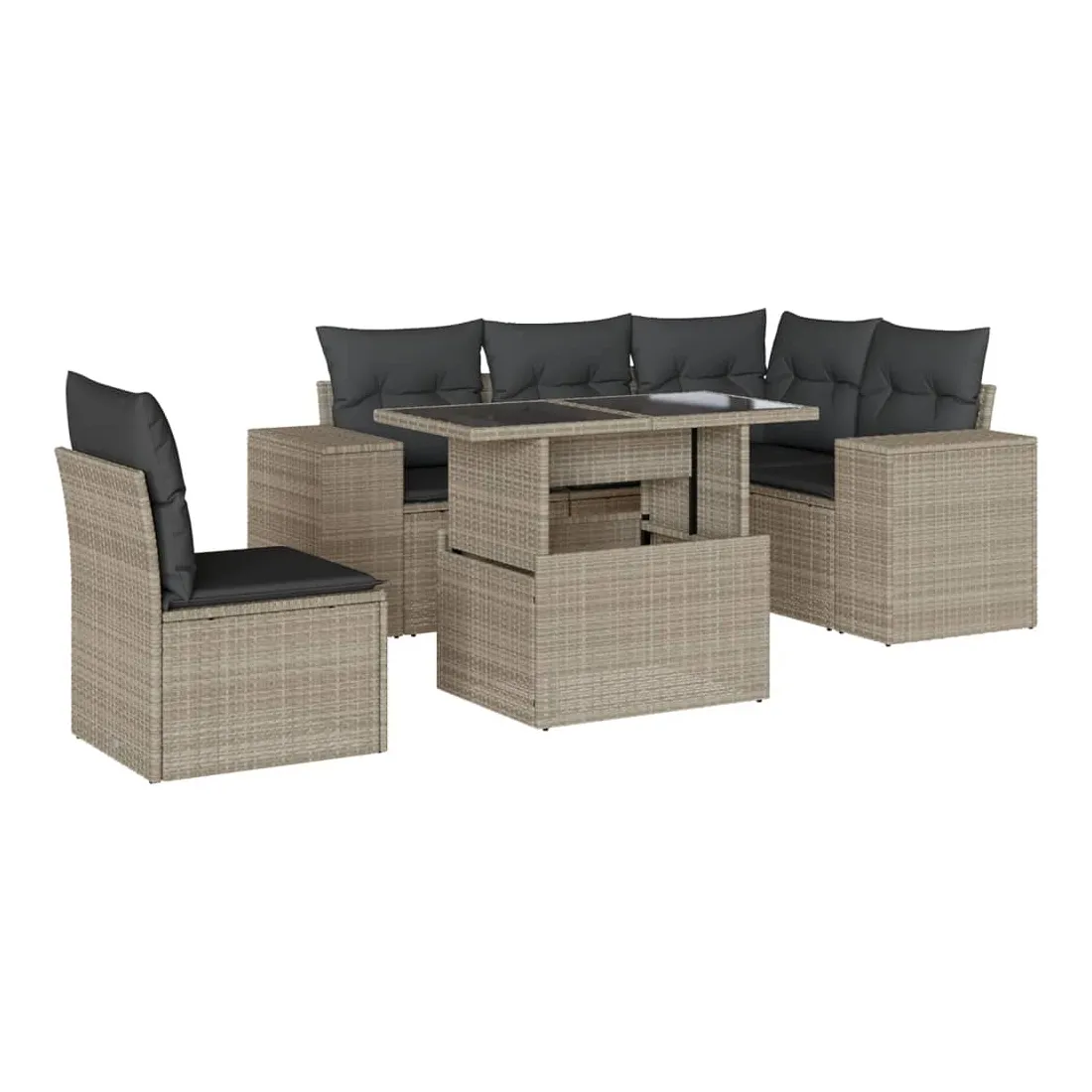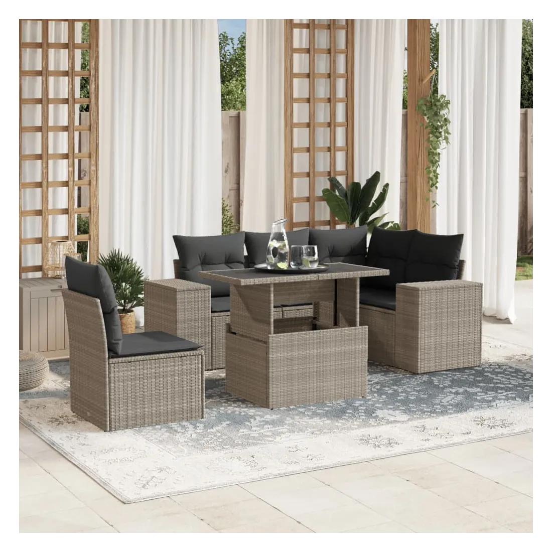 Cet ensemble de canapés de jardin est le complément parfait de votre arrière-cour, terrasse ou patio, offrant un espace confortable et accueillant pour discuter avec la famille et les amis ou simplement se détendre et profiter de l'extérieur. Matériau durable : la résine tressée, également connue sous le nom de poly rotin, est un matériau synthétique solide et nécessitant peu d'entretien qui ressemble au rotin naturel. Elle est légère, facile à nettoyer et couramment utilisée pour les meubles d'extérieur en raison de sa durabilité et de ses propriétés de résistance aux intempéries.Dessus de table réglable : le dessus de table peut être soulevé pour rendre la table plus haute, ce qui transforme la table d'extérieur d'une table basse à une table de salle à manger. Elle est parfaite pour recevoir des invités ou prendre des repas à l'extérieur.Expérience d'assise confortable : ce mobilier d'extérieur, doté de coussins épais, offre une expérience d'assise confortable.Housse amovible et lavable : ces coussins de siège sont dotés de housses amovibles pour un lavage et un entretien faciles.Conception modulaire : cet ensemble de meubles d'extérieur a une conception modulaire, ce qui le rend complètement flexible et facile à déplacer, afin que vous puissiez créer un agencement de meubles d'extérieur personnalisé. Bon à savoir :Pour que vos meubles d'extérieur restent beaux, nous vous recommandons de les protéger avec une housse imperméable.