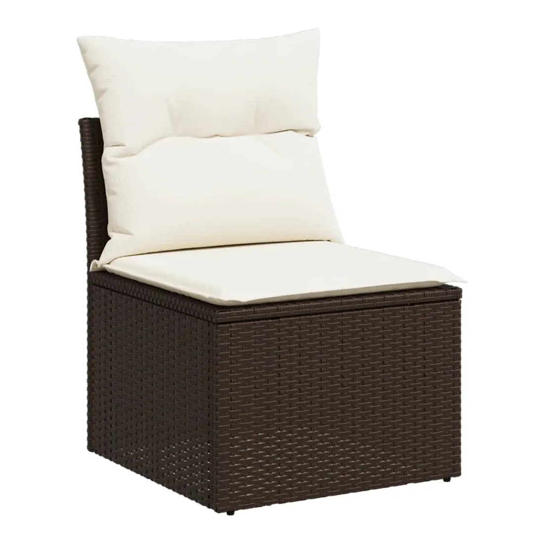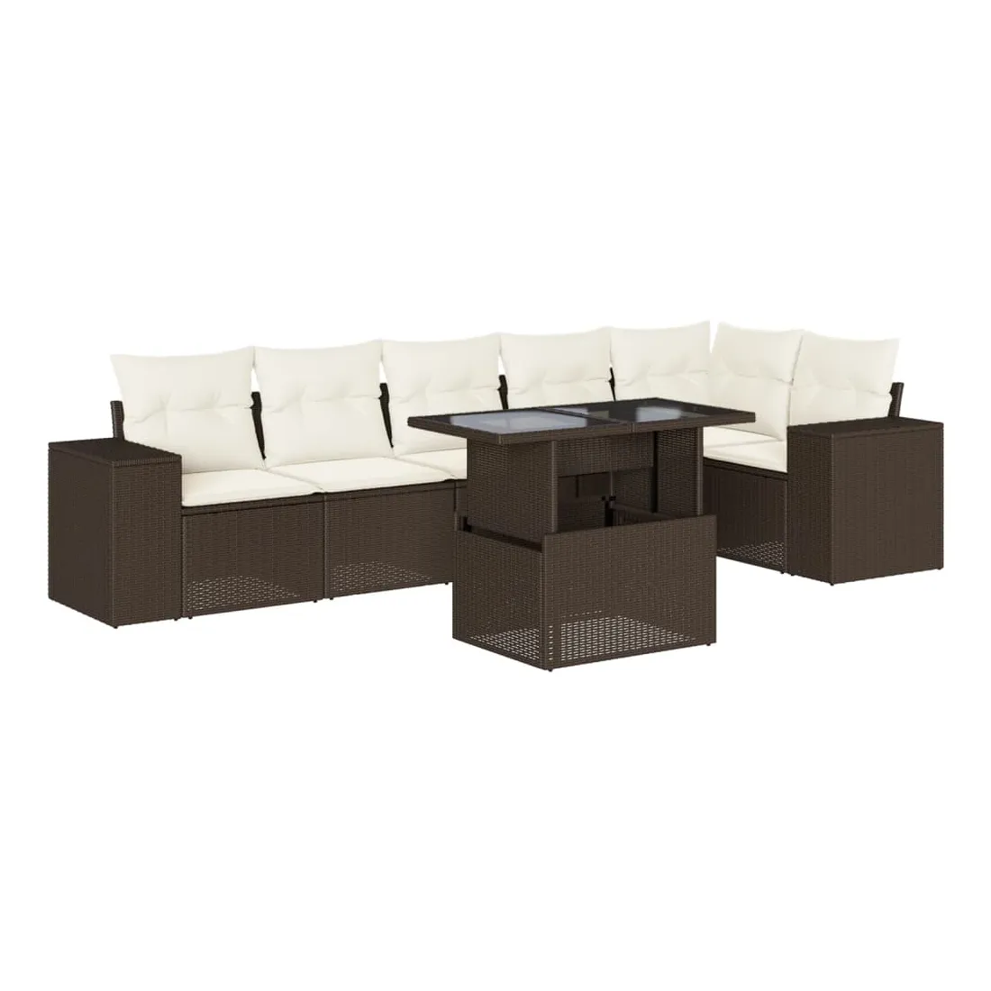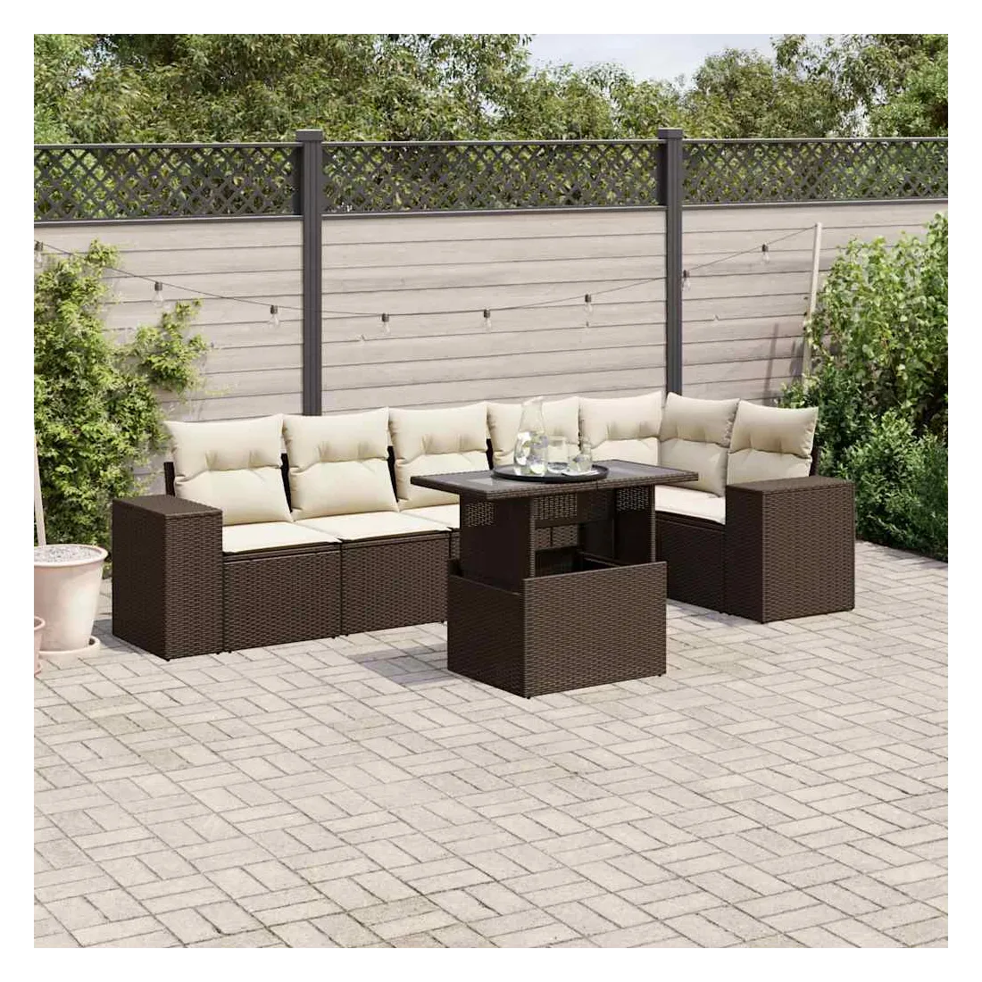 Salon de jardin avec coussins 7 pcs marron résine tressée