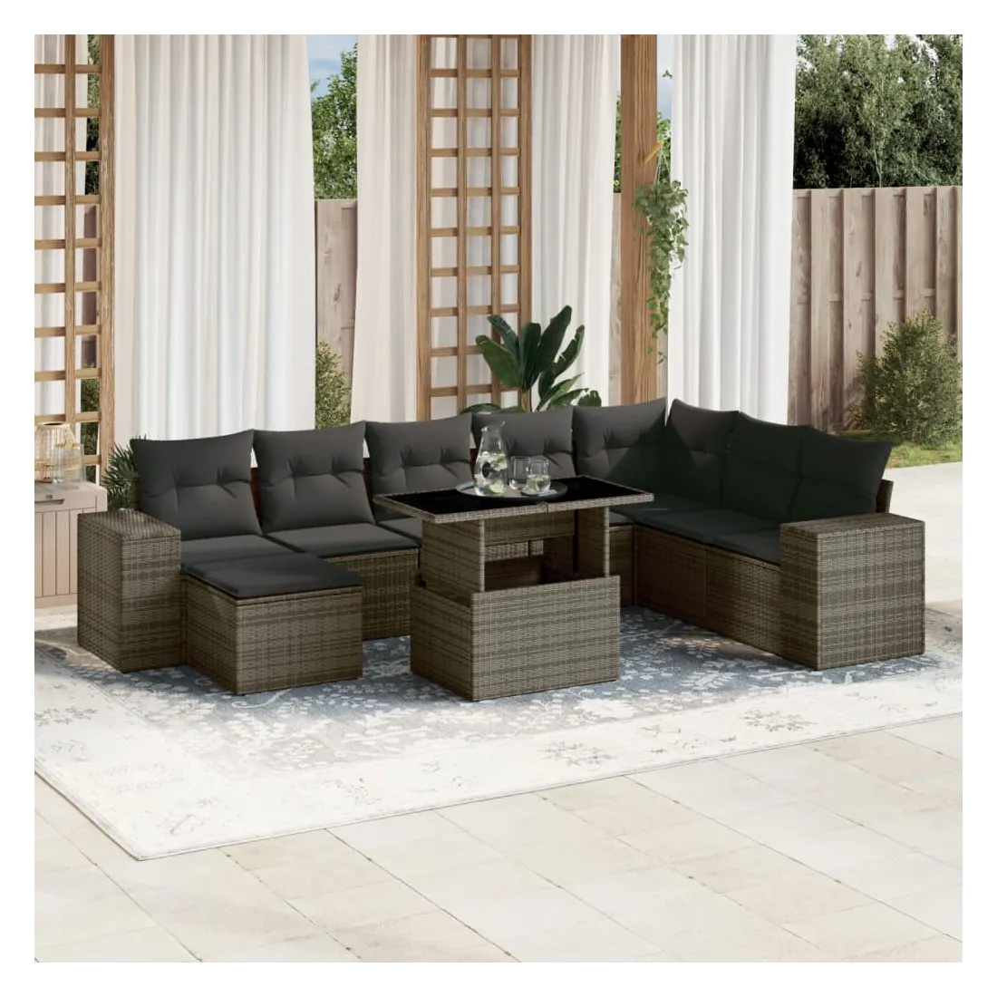 Cet ensemble de canapés de jardin est le complément parfait de votre arrière-cour, terrasse ou patio, offrant un espace confortable et accueillant pour discuter avec la famille et les amis ou simplement se détendre et profiter de l'extérieur. Matériau durable : la résine tressée, également connue sous le nom de poly rotin, est un matériau synthétique solide et nécessitant peu d'entretien qui ressemble au rotin naturel. Il est léger, facile à nettoyer et couramment utilisé pour les meubles d'extérieur en raison de sa durabilité et de ses propriétés de résistance aux intempéries.Dessus de table réglable : le dessus de table peut être soulevé pour rendre la table plus haute, ce qui transforme la table d'extérieur d'une table basse à une table de salle à manger. Elle est parfaite pour recevoir des invités ou prendre des repas à l'extérieur.Expérience d'assise confortable : ce mobilier d'extérieur, doté de coussins épais, offre une expérience d'assise confortable.Housse amovible et lavable : ces coussins de siège sont dotés de housses amovibles pour un lavage et un entretien faciles.Conception modulaire : cet ensemble de meubles d'extérieur a une conception modulaire, ce qui le rend complètement flexible et facile à déplacer, afin que vous puissiez créer un agencement de meubles d'extérieur personnalisé. Bon à savoir :Pour que vos meubles d'extérieur restent beaux, nous vous recommandons de les protéger avec une housse imperméable.