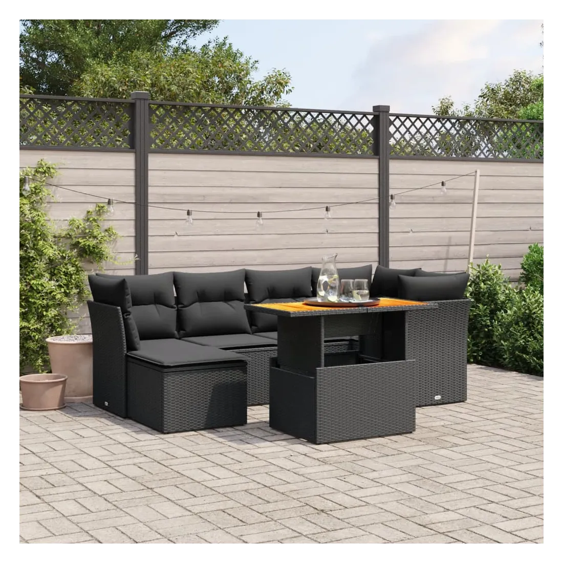 Cet ensemble de canapés de jardin est le complément parfait de votre arrière-cour, terrasse ou patio, offrant un espace confortable et accueillant pour discuter avec la famille et les amis ou simplement se détendre et profiter de l'extérieur. Matériau durable : la résine tressée, également connue sous le nom de poly rotin, est un matériau synthétique solide et nécessitant peu d'entretien qui ressemble au rotin naturel. Il est léger, facile à nettoyer et couramment utilisé pour les meubles d'extérieur en raison de sa durabilité et de ses propriétés de résistance aux intempéries.Dessus de table réglable : le dessus de table peut être soulevé pour rendre la table plus haute, ce qui transforme la table d'extérieur d'une table basse à une table de salle à manger. Elle est parfaite pour recevoir des invités ou prendre des repas à l'extérieur.Expérience d'assise confortable : ce mobilier d'extérieur, doté de coussins épais, offre une expérience d'assise confortable.Housse amovible et lavable : ces coussins de siège sont dotés de housses amovibles pour un lavage et un entretien faciles.Conception modulaire : cet ensemble de meubles d'extérieur a une conception modulaire, ce qui le rend complètement flexible et facile à déplacer, afin que vous puissiez créer un agencement de meubles d'extérieur personnalisé. Bon à savoir :Pour que vos meubles d'extérieur restent beaux, nous vous recommandons de les protéger avec une housse imperméable.