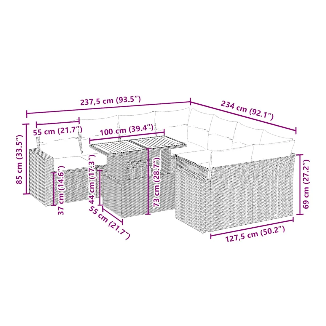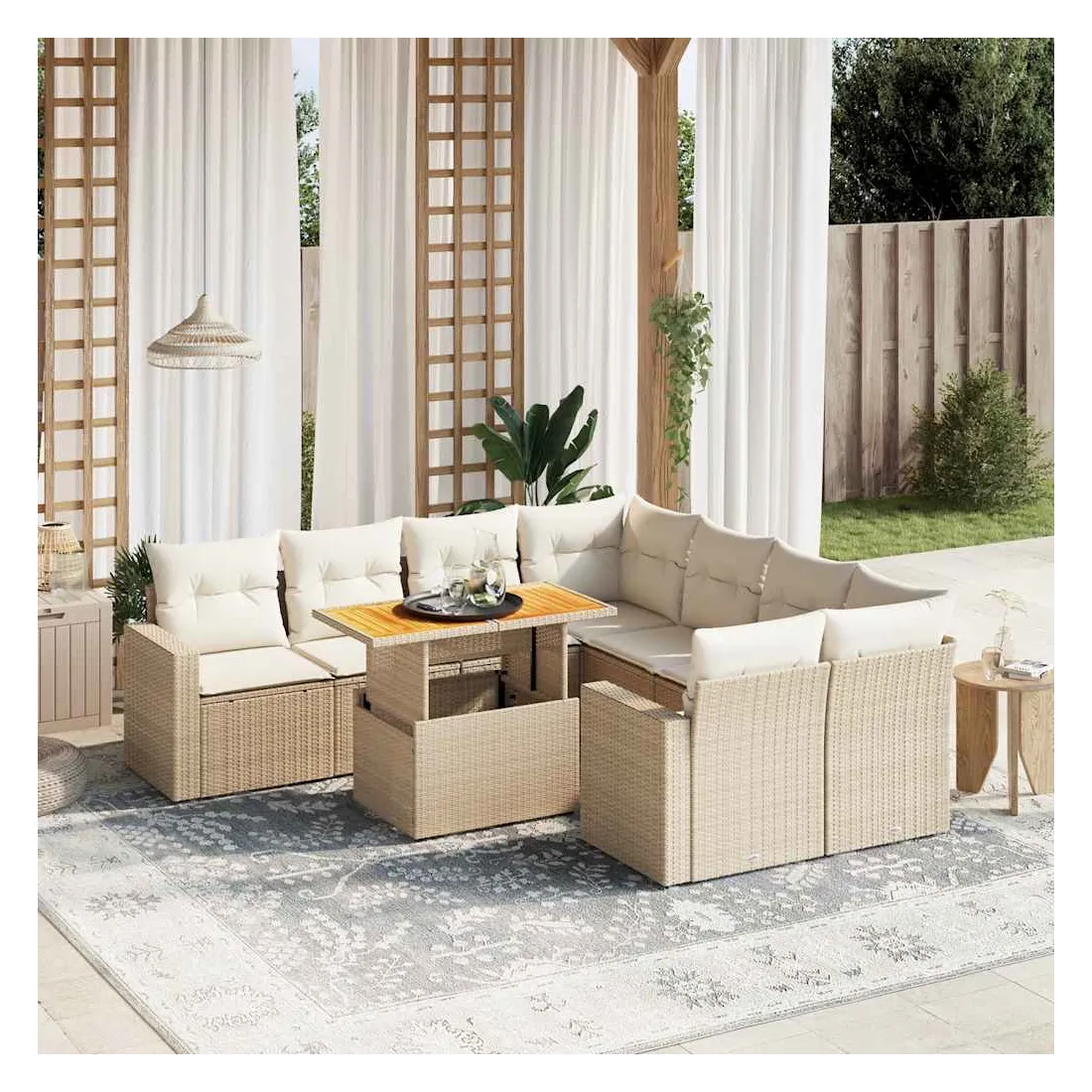 Cet ensemble de canapés de jardin est le complément parfait de votre arrière-cour, terrasse ou patio, offrant un espace confortable et accueillant pour discuter avec la famille et les amis ou simplement se détendre et profiter de l'extérieur. Matériau durable : la résine tressée, également connue sous le nom de poly rotin, est un matériau synthétique solide et nécessitant peu d'entretien qui ressemble au rotin naturel. Il est léger, facile à nettoyer et couramment utilisé pour les meubles d'extérieur en raison de sa durabilité et de ses propriétés de résistance aux intempéries.Dessus de table réglable : le dessus de table peut être soulevé pour rendre la table plus haute, ce qui transforme la table d'extérieur d'une table basse à une table de salle à manger. Elle est parfaite pour recevoir des invités ou prendre des repas à l'extérieur.Expérience d'assise confortable : ce mobilier d'extérieur, doté de coussins épais, offre une expérience d'assise confortable.Housse amovible et lavable : ces coussins de siège sont dotés de housses amovibles pour un lavage et un entretien faciles.Conception modulaire : cet ensemble de meubles d'extérieur a une conception modulaire, ce qui le rend complètement flexible et facile à déplacer, afin que vous puissiez créer un agencement de meubles d'extérieur personnalisé. Bon à savoir :Pour que vos meubles d'extérieur restent beaux, nous vous recommandons de les protéger avec une housse imperméable.