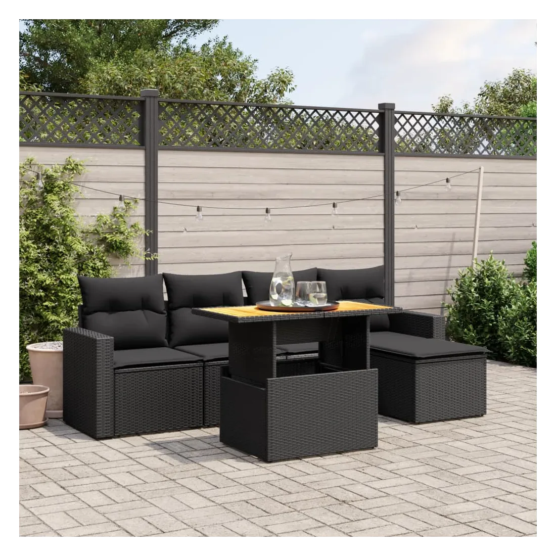 Cet ensemble de canapés de jardin est le complément parfait de votre arrière-cour, terrasse ou patio, offrant un espace confortable et accueillant pour discuter avec la famille et les amis ou simplement se détendre et profiter de l'extérieur. Matériau durable : la résine tressée, également connue sous le nom de poly rotin, est un matériau synthétique solide et nécessitant peu d'entretien qui ressemble au rotin naturel. Il est léger, facile à nettoyer et couramment utilisé pour les meubles d'extérieur en raison de sa durabilité et de ses propriétés de résistance aux intempéries.Dessus de table réglable : le dessus de table peut être soulevé pour rendre la table plus haute, ce qui transforme la table d'extérieur d'une table basse à une table de salle à manger. Elle est parfaite pour recevoir des invités ou prendre des repas à l'extérieur.Expérience d'assise confortable : ce mobilier d'extérieur, doté de coussins épais, offre une expérience d'assise confortable.Housse amovible et lavable : ces coussins de siège sont dotés de housses amovibles pour un lavage et un entretien faciles.Conception modulaire : cet ensemble de meubles d'extérieur a une conception modulaire, ce qui le rend complètement flexible et facile à déplacer, afin que vous puissiez créer un agencement de meubles d'extérieur personnalisé. Bon à savoir :Pour que vos meubles d'extérieur restent beaux, nous vous recommandons de les protéger avec une housse imperméable.