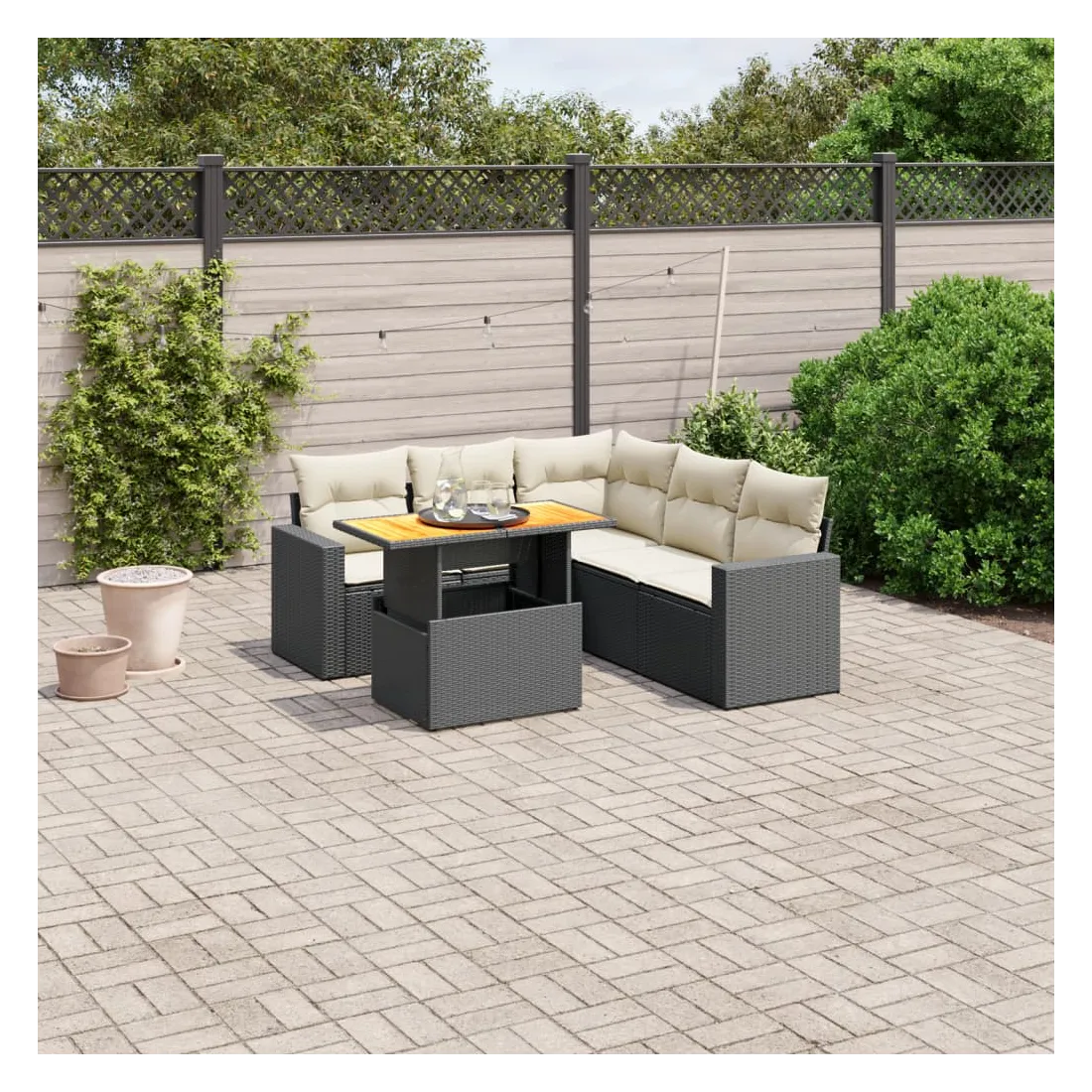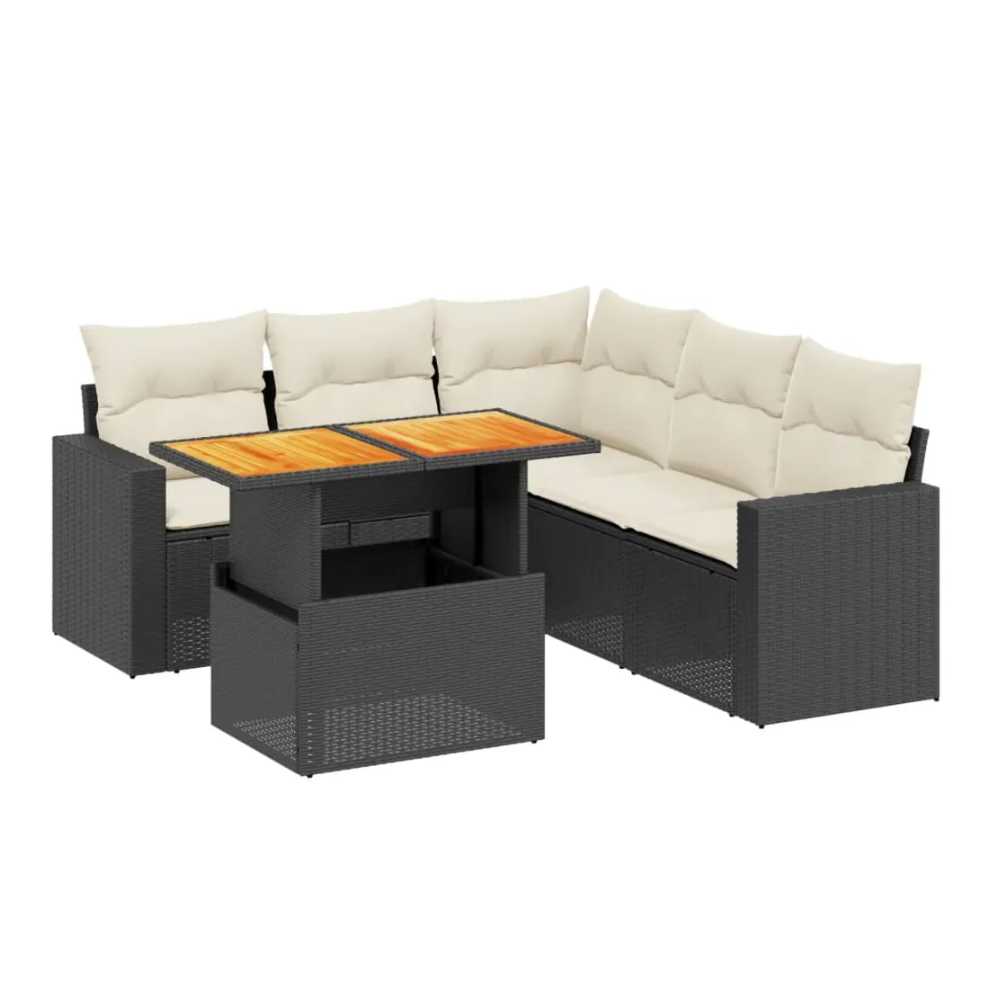 Salon de jardin 6 pcs avec coussins noir résine tressée