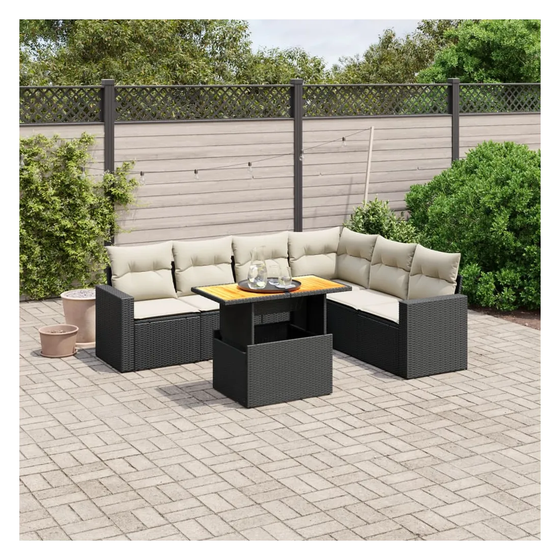 Cet ensemble de canapés de jardin est le complément parfait de votre arrière-cour, terrasse ou patio, offrant un espace confortable et accueillant pour discuter avec la famille et les amis ou simplement se détendre et profiter de l'extérieur. Matériau durable : la résine tressée, également connue sous le nom de poly rotin, est un matériau synthétique solide et nécessitant peu d'entretien qui ressemble au rotin naturel. Il est léger, facile à nettoyer et couramment utilisé pour les meubles d'extérieur en raison de sa durabilité et de ses propriétés de résistance aux intempéries.Dessus de table réglable : le dessus de table peut être soulevé pour rendre la table plus haute, ce qui transforme la table d'extérieur d'une table basse à une table de salle à manger. Elle est parfaite pour recevoir des invités ou prendre des repas à l'extérieur.Expérience d'assise confortable : ce mobilier d'extérieur, doté de coussins épais, offre une expérience d'assise confortable.Housse amovible et lavable : ces coussins de siège sont dotés de housses amovibles pour un lavage et un entretien faciles.Conception modulaire : cet ensemble de meubles d'extérieur a une conception modulaire, ce qui le rend complètement flexible et facile à déplacer, afin que vous puissiez créer un agencement de meubles d'extérieur personnalisé. Bon à savoir :Pour que vos meubles d'extérieur restent beaux, nous vous recommandons de les protéger avec une housse imperméable.