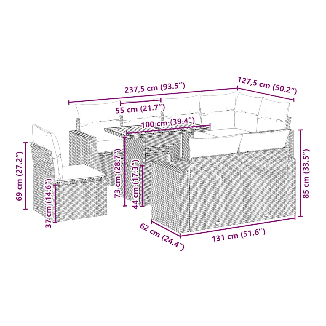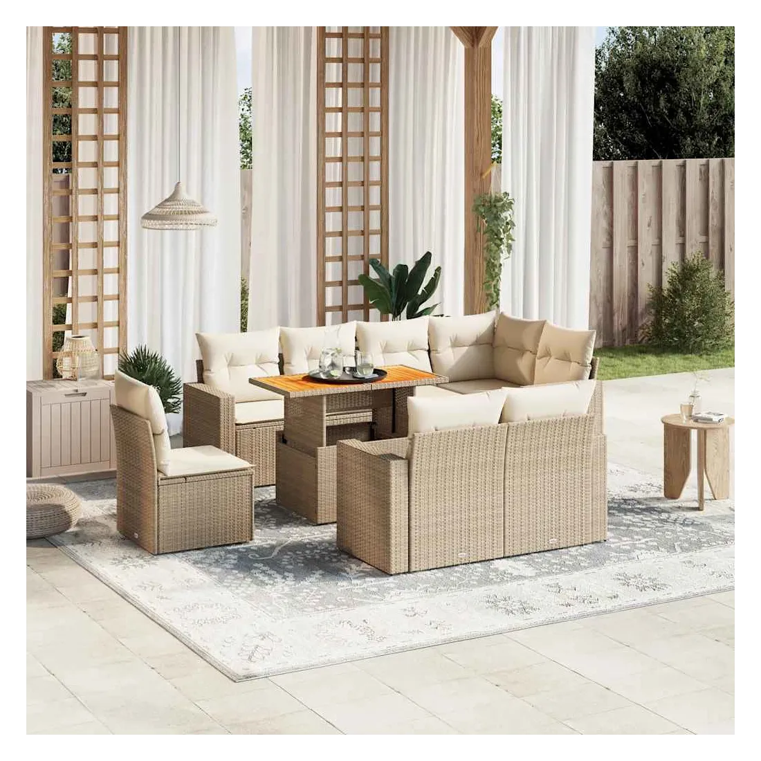 Cet ensemble de canapés de jardin est le complément parfait de votre arrière-cour, terrasse ou patio, offrant un espace confortable et accueillant pour discuter avec la famille et les amis ou simplement se détendre et profiter de l'extérieur. Matériau durable : la résine tressée, également connue sous le nom de poly rotin, est un matériau synthétique solide et nécessitant peu d'entretien qui ressemble au rotin naturel. Il est léger, facile à nettoyer et couramment utilisé pour les meubles d'extérieur en raison de sa durabilité et de ses propriétés de résistance aux intempéries.Dessus de table réglable : le dessus de table peut être soulevé pour rendre la table plus haute, ce qui transforme la table d'extérieur d'une table basse à une table de salle à manger. Elle est parfaite pour recevoir des invités ou prendre des repas à l'extérieur.Expérience d'assise confortable : ce mobilier d'extérieur, doté de coussins épais, offre une expérience d'assise confortable.Housse amovible et lavable : ces coussins de siège sont dotés de housses amovibles pour un lavage et un entretien faciles.Conception modulaire : cet ensemble de meubles d'extérieur a une conception modulaire, ce qui le rend complètement flexible et facile à déplacer, afin que vous puissiez créer un agencement de meubles d'extérieur personnalisé. Bon à savoir :Pour que vos meubles d'extérieur restent beaux, nous vous recommandons de les protéger avec une housse imperméable.