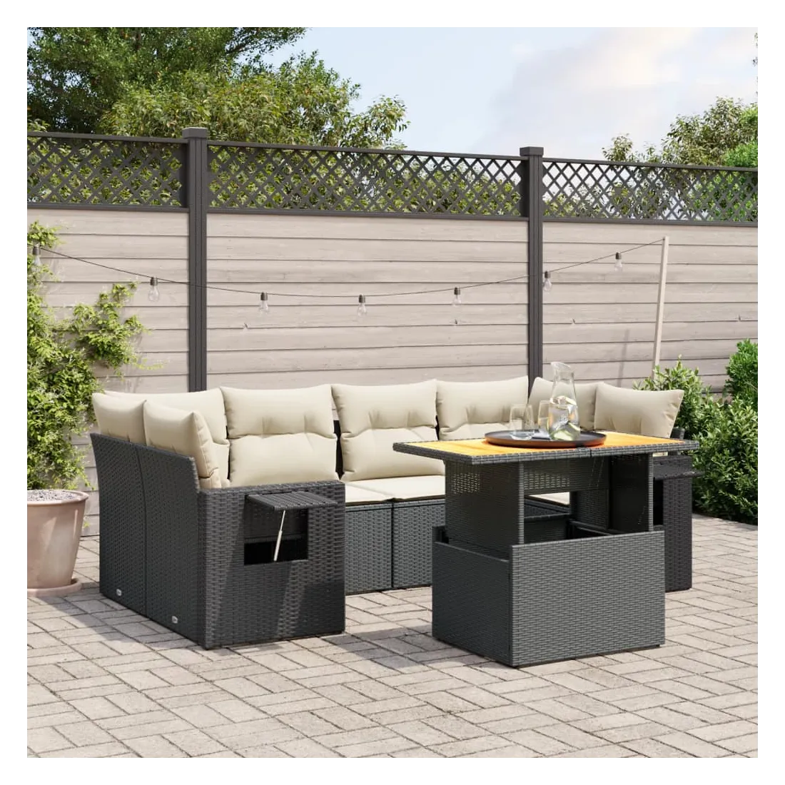 Cet ensemble de canapés de jardin est le complément parfait de votre arrière-cour, terrasse ou patio, offrant un espace confortable et accueillant pour discuter avec la famille et les amis ou simplement se détendre et profiter de l'extérieur. Matériau durable : la résine tressée, également connue sous le nom de poly rotin, est un matériau synthétique solide et nécessitant peu d'entretien qui ressemble au rotin naturel. Il est léger, facile à nettoyer et couramment utilisé pour les meubles d'extérieur en raison de sa durabilité et de ses propriétés de résistance aux intempéries.Dessus de table réglable : le dessus de table peut être soulevé pour rendre la table plus haute, ce qui transforme la table d'extérieur d'une table basse à une table de salle à manger. Elle est parfaite pour recevoir des invités ou prendre des repas à l'extérieur.Table d'appoint pratique : ce mobilier d'extérieur comprend une table d'appoint pliable avec un ressort à gaz sur les accoudoirs, offrant un endroit pratique pour garder vos essentiels à portée de main.Housse amovible et lavable : ces coussins de siège sont dotés de housses amovibles pour un lavage et un entretien faciles.Conception modulaire : cet ensemble de meubles d'extérieur a une conception modulaire, ce qui le rend complètement flexible et facile à déplacer, afin que vous puissiez créer un agencement de meubles d'extérieur personnalisé. Bon à savoir :Pour que vos meubles d'extérieur restent beaux, nous vous recommandons de les protéger avec une housse imperméable.