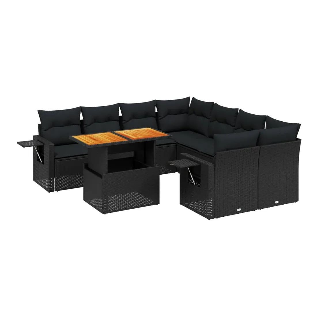 Cet ensemble de canapés de jardin est le complément parfait de votre arrière-cour, terrasse ou patio, offrant un espace confortable et accueillant pour discuter avec la famille et les amis ou simplement se détendre et profiter de l'extérieur. Matériau durable : la résine tressée, également connue sous le nom de poly rotin, est un matériau synthétique solide et nécessitant peu d'entretien qui ressemble au rotin naturel. Il est léger, facile à nettoyer et couramment utilisé pour les meubles d'extérieur en raison de sa durabilité et de ses propriétés de résistance aux intempéries.Dessus de table réglable : le dessus de table peut être soulevé pour rendre la table plus haute, ce qui transforme la table d'extérieur d'une table basse à une table de salle à manger. Elle est parfaite pour recevoir des invités ou prendre des repas à l'extérieur.Table d'appoint pratique : ce mobilier d'extérieur comprend une table d'appoint pliable avec un ressort à gaz sur les accoudoirs, offrant un endroit pratique pour garder vos essentiels à portée de main.Housse amovible et lavable : ces coussins de siège sont dotés de housses amovibles pour un lavage et un entretien faciles.Conception modulaire : cet ensemble de meubles d'extérieur a une conception modulaire, ce qui le rend complètement flexible et facile à déplacer, afin que vous puissiez créer un agencement de meubles d'extérieur personnalisé. Bon à savoir :Pour que vos meubles d'extérieur restent beaux, nous vous recommandons de les protéger avec une housse imperméable.