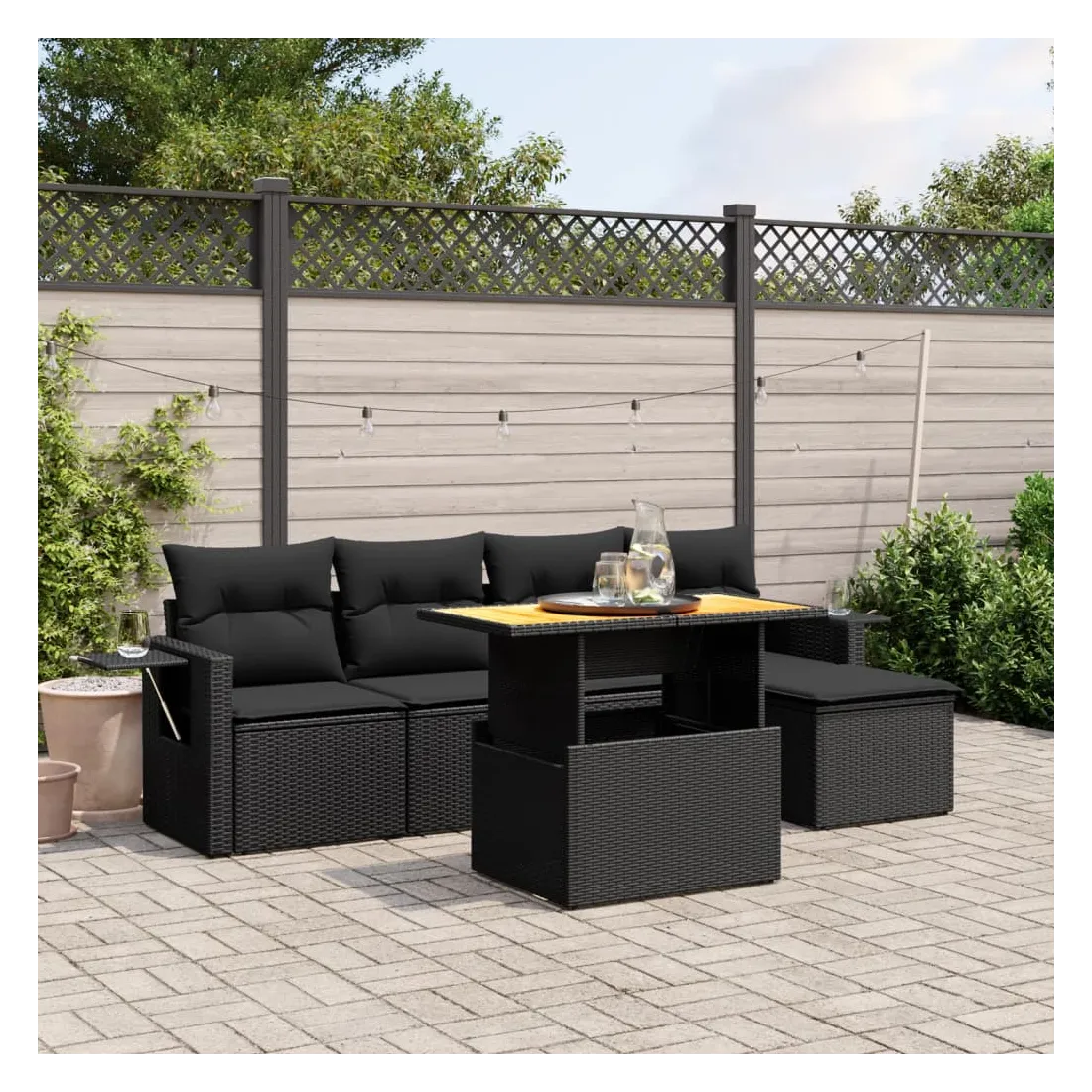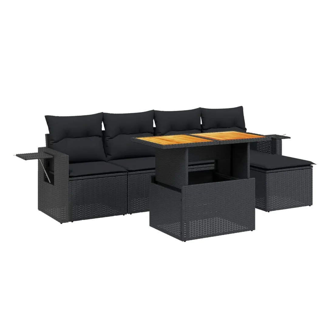 Cet ensemble de canapés de jardin est le complément parfait de votre arrière-cour, terrasse ou patio, offrant un espace confortable et accueillant pour discuter avec la famille et les amis ou simplement se détendre et profiter de l'extérieur. Matériau durable : la résine tressée, également connue sous le nom de poly rotin, est un matériau synthétique solide et nécessitant peu d'entretien qui ressemble au rotin naturel. Il est léger, facile à nettoyer et couramment utilisé pour les meubles d'extérieur en raison de sa durabilité et de ses propriétés de résistance aux intempéries.Dessus de table réglable : le dessus de table peut être soulevé pour rendre la table plus haute, ce qui transforme la table d'extérieur d'une table basse à une table de salle à manger. Elle est parfaite pour recevoir des invités ou prendre des repas à l'extérieur.Table d'appoint pratique : ce mobilier d'extérieur comprend une table d'appoint pliable avec un ressort à gaz sur les accoudoirs, offrant un endroit pratique pour garder vos essentiels à portée de main.Housse amovible et lavable : ces coussins de siège sont dotés de housses amovibles pour un lavage et un entretien faciles.Conception modulaire : cet ensemble de meubles d'extérieur a une conception modulaire, ce qui le rend complètement flexible et facile à déplacer, afin que vous puissiez créer un agencement de meubles d'extérieur personnalisé. Bon à savoir :Pour que vos meubles d'extérieur restent beaux, nous vous recommandons de les protéger avec une housse imperméable.