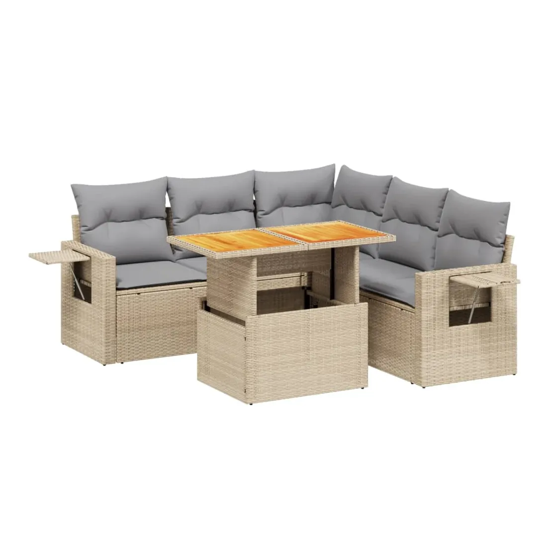 Salon de jardin avec coussins 6 pcs beige résine tressée