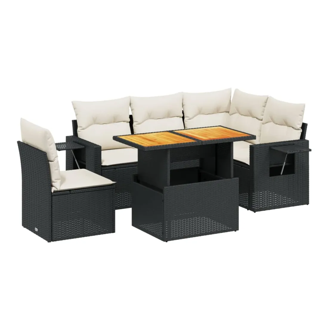 Salon de jardin 6 pcs avec coussins noir résine tressée
