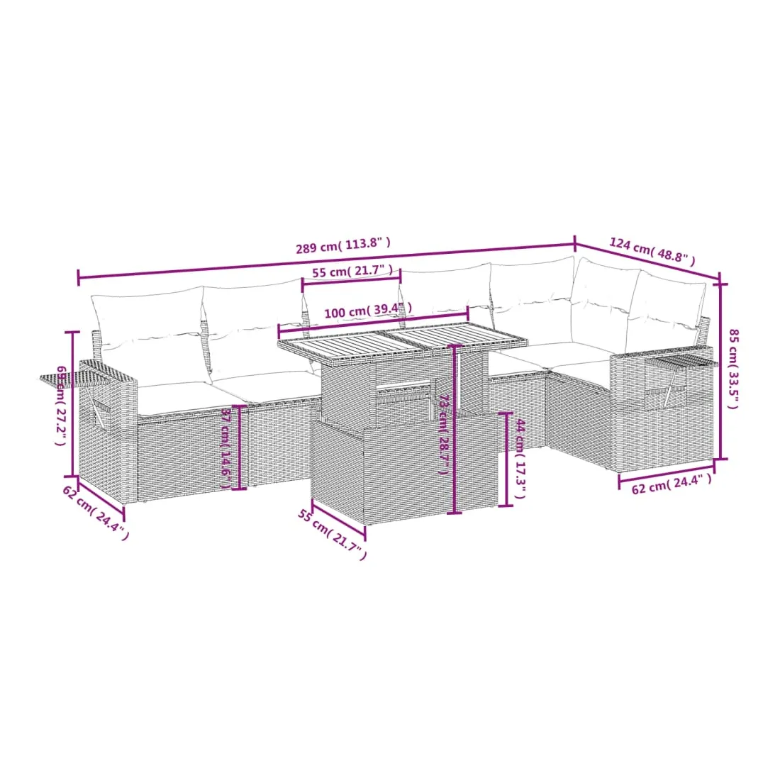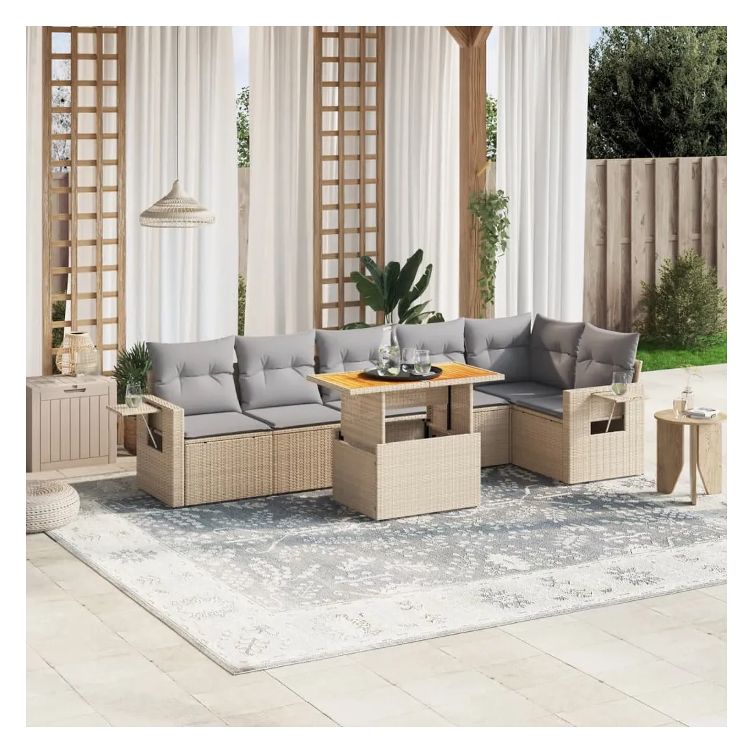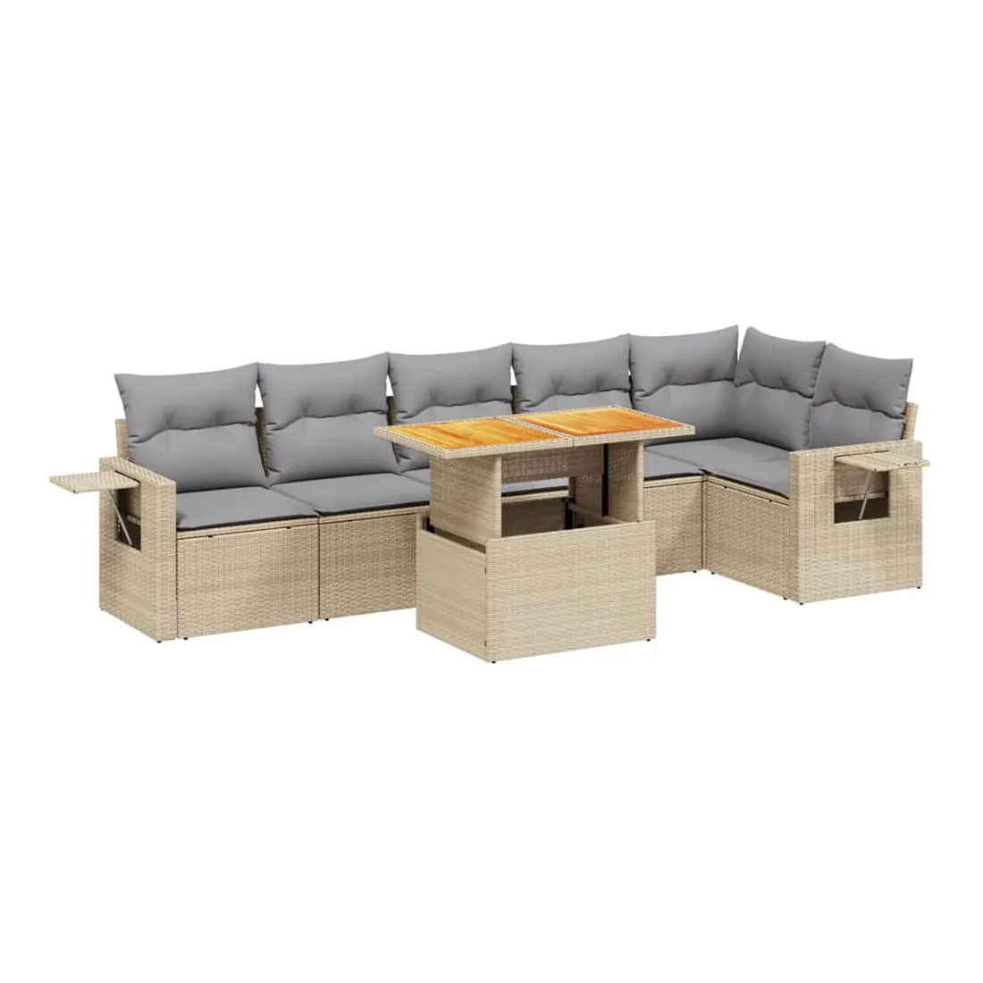 Salon de jardin avec coussins 7 pcs beige résine tressée